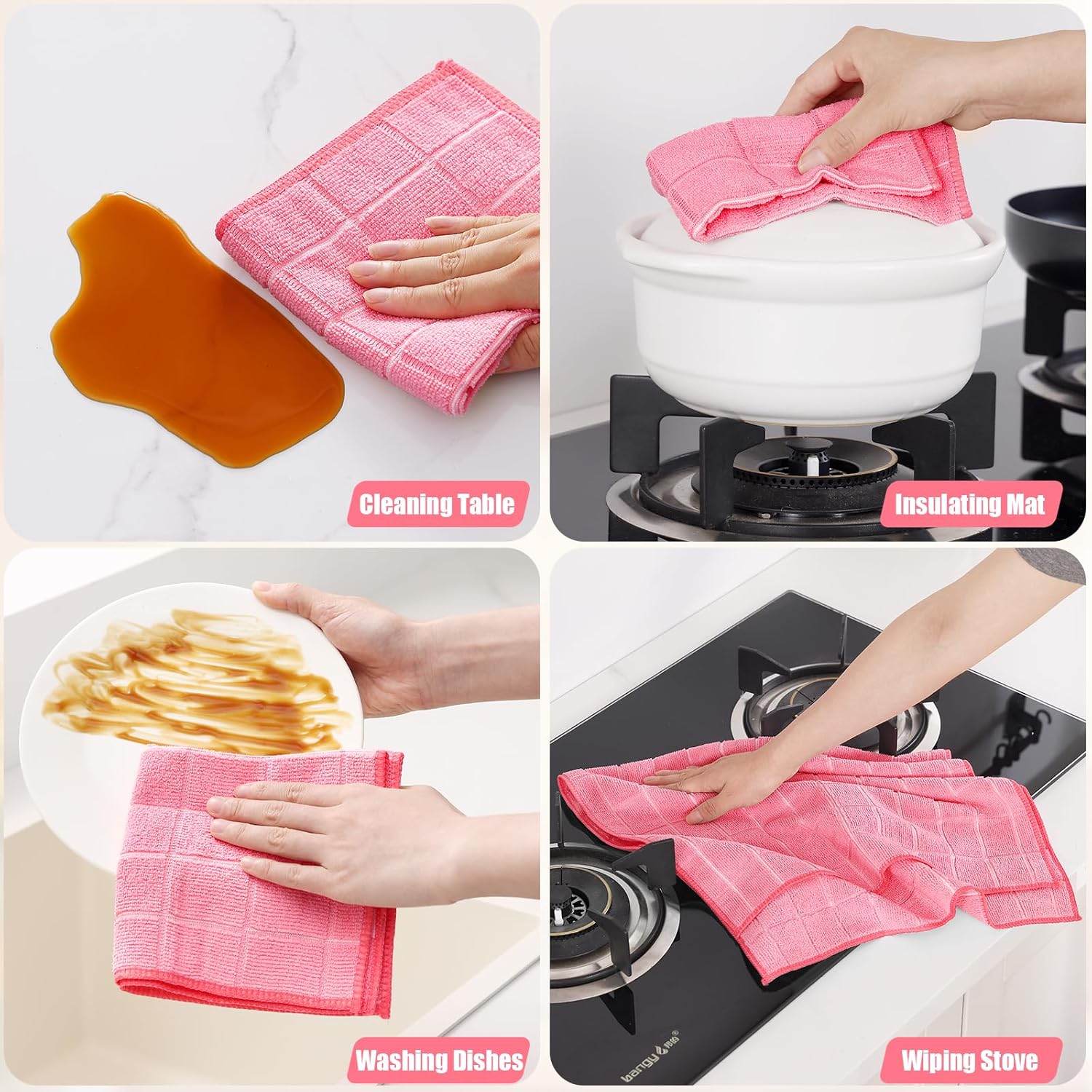 Homaxy Microfiber Kitchen Towels and Dishcloths Set, 12 Pack Soft and Absorbent Dish Hand Towels Bulk, 28 x 16 Inch & 12 x 12 Inch Quick Drying Rags for Washing Dishes, Pink