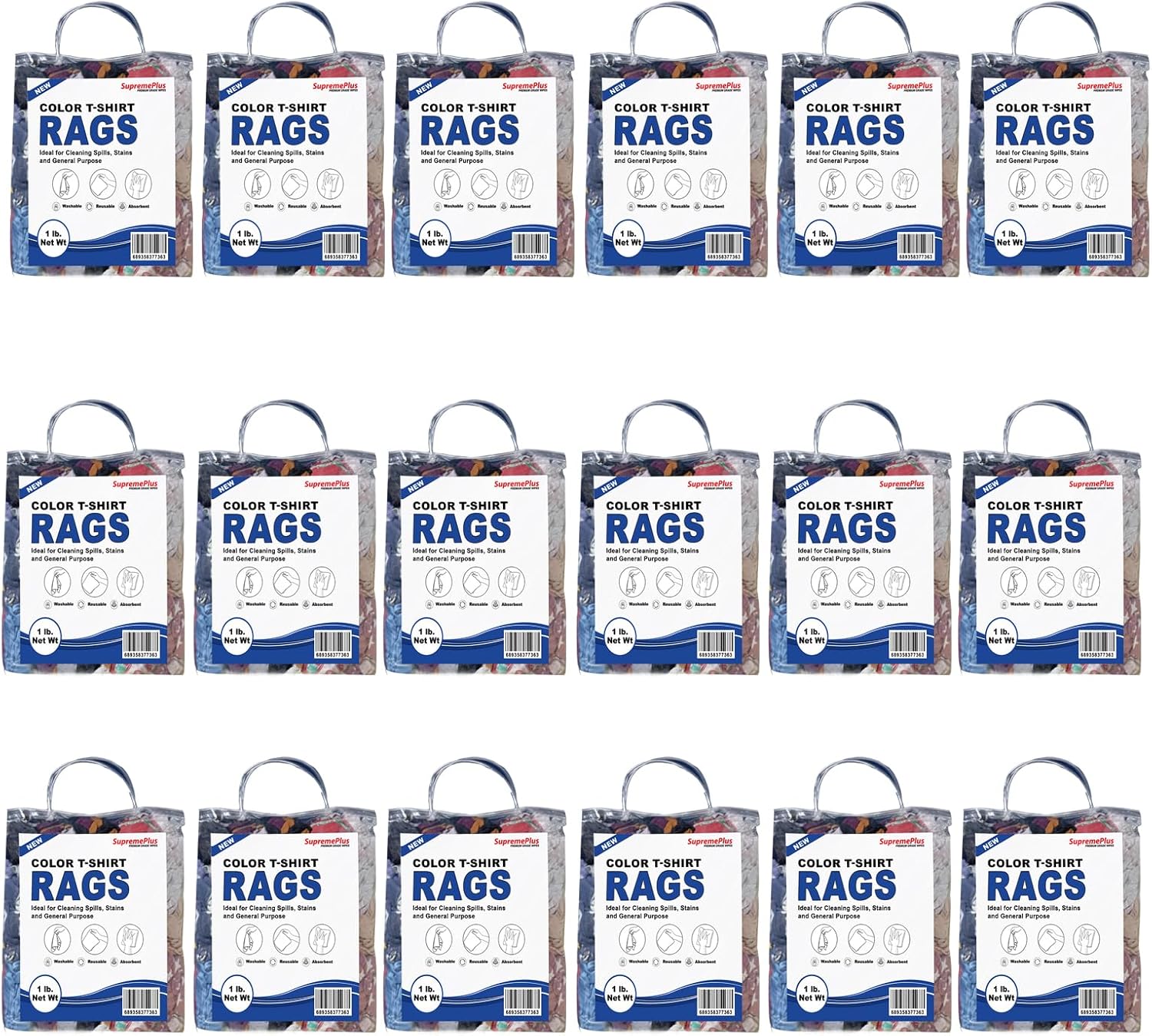 Premium Color Knit Cleaning Rags (1 lb. Bag - Pack of 24) – Shop Rags Bulk for Workshops, Mechanics, Painters, and Home Use, Multipurpose Cotton T-Shirt Rags