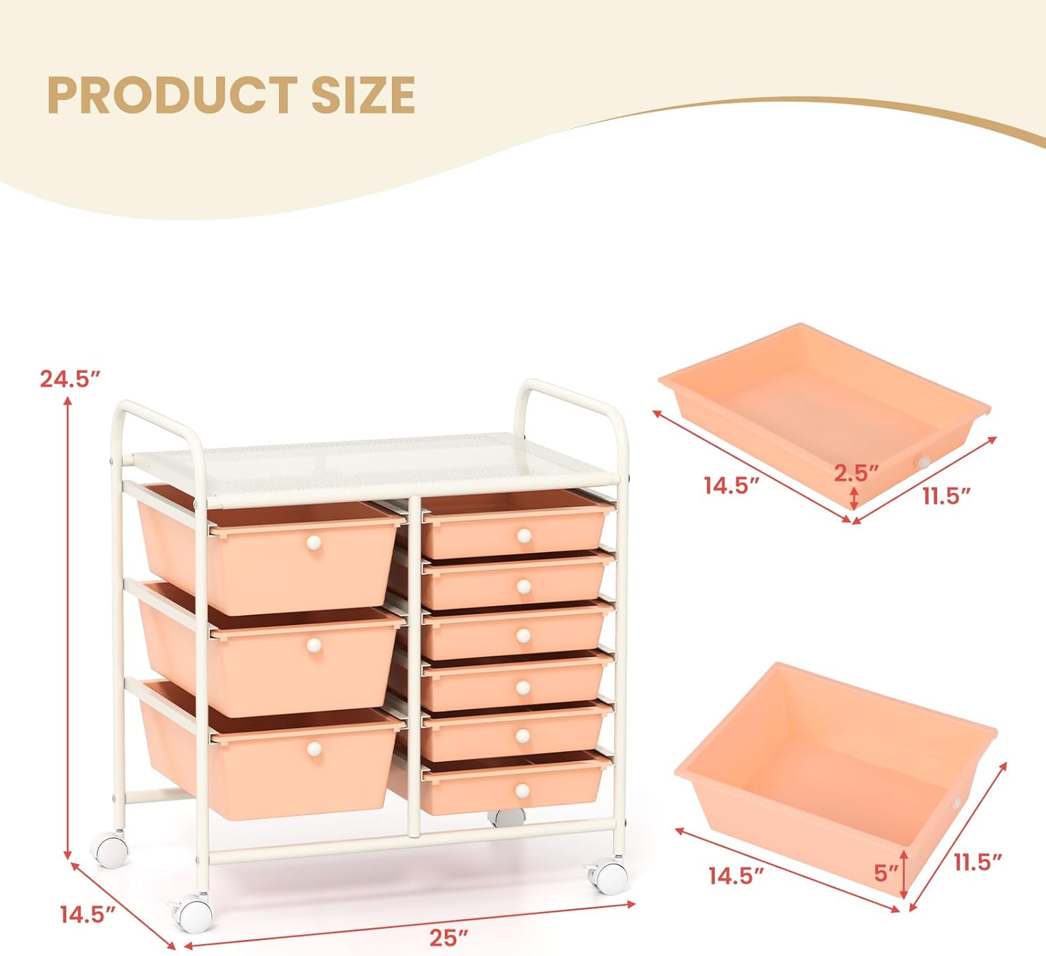 - 9 Removable Drawers: There are 3 large sized drawers (14.5" x 11.5" x 5") and 6 medium sized drawers (14.5" x 11.5" x 2.5") to store and classify sorts of files, stationery, and sundries. The spacious top is perfect for storing items that you need to access frequently.