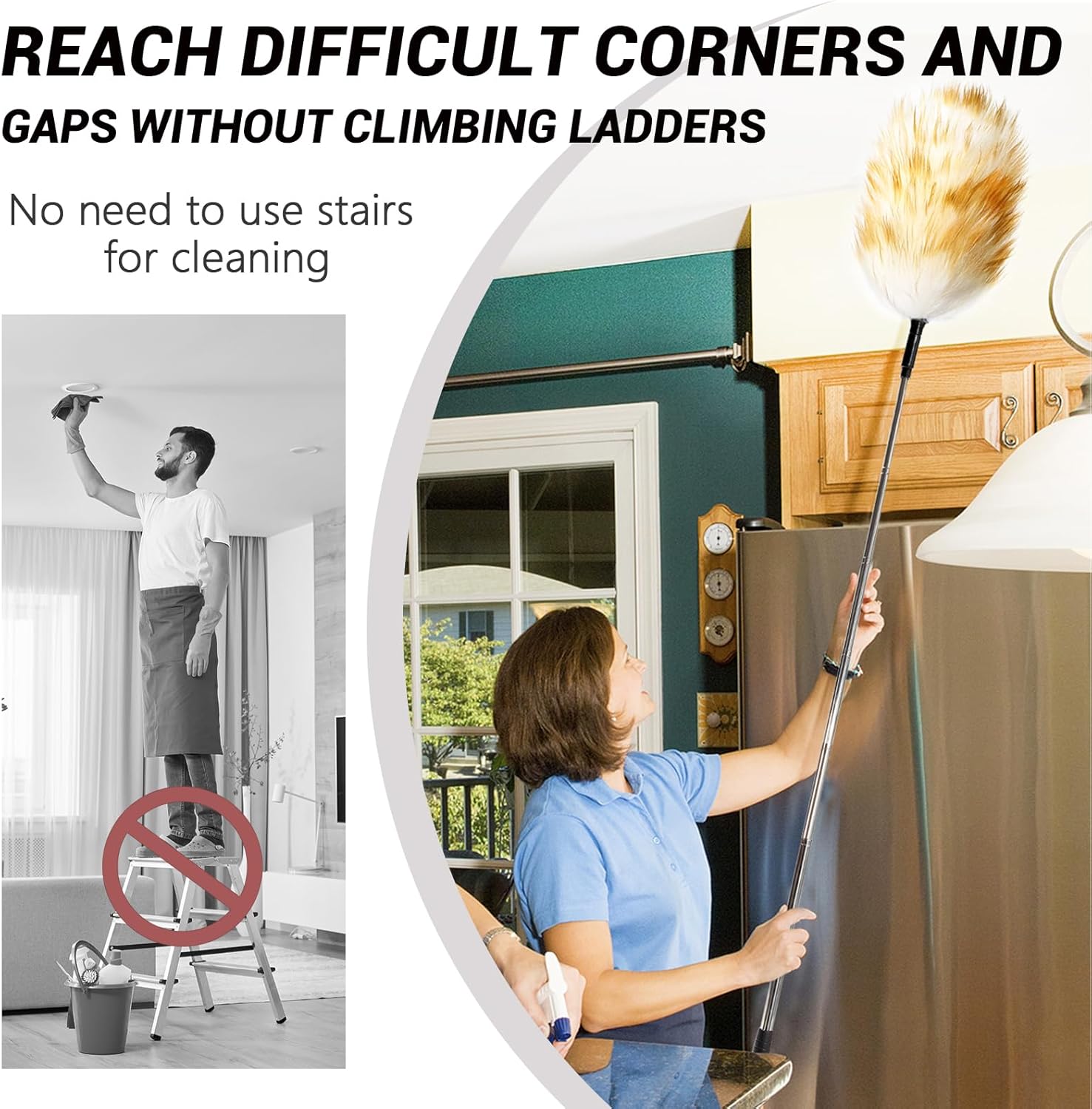 - Extendable Design: The aluminum alloy pole can extend up to 55 inches, facilitating the cleaning of hard-to-reach areas such as ceilings, cabinet, and the tops of bookshelves. The extendable feature not only saves time but also enhances safety by reducing the need for unstable climbing aids.