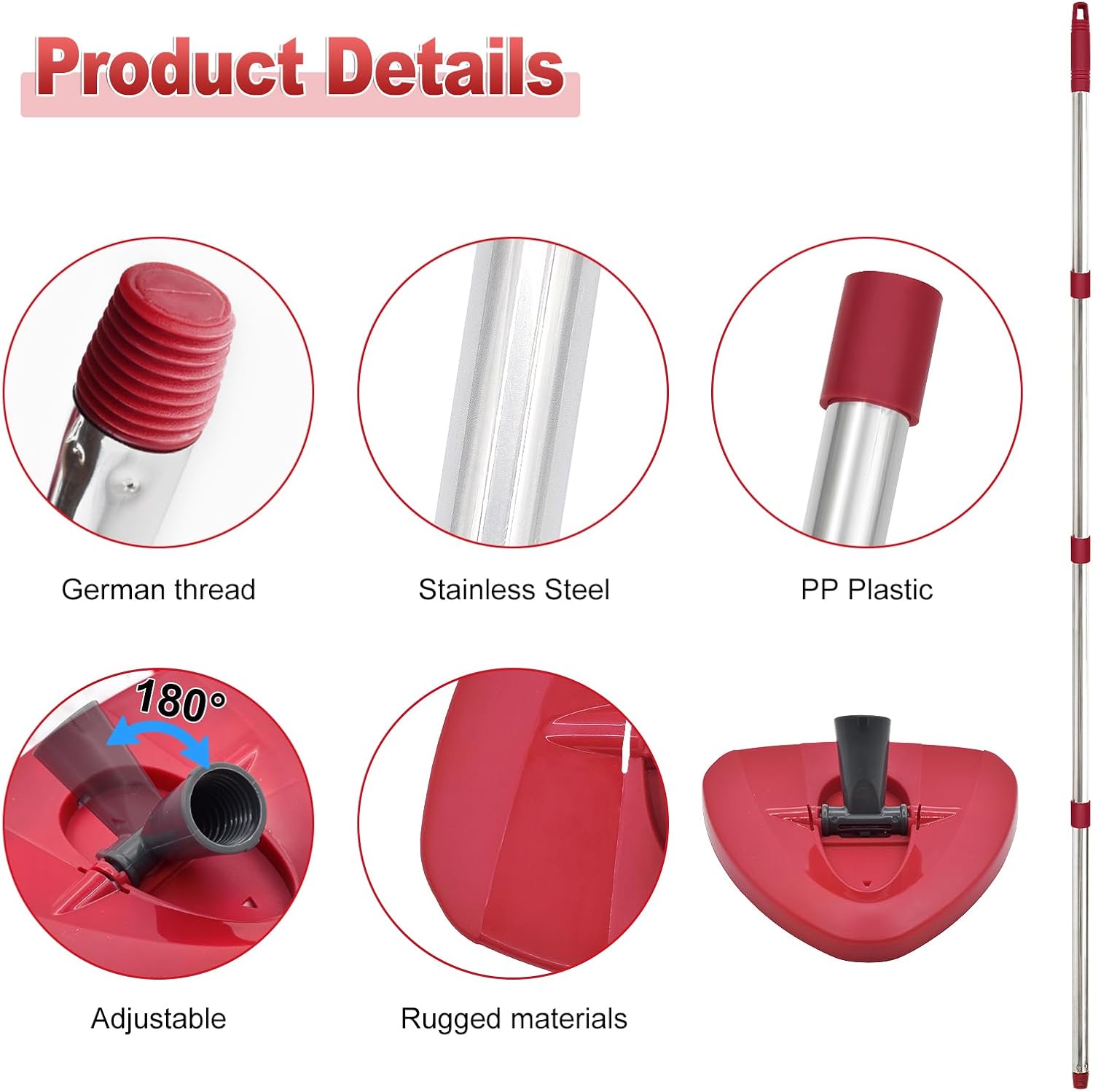 - Easy to install: 4-Section Mop handle and base set is built for long-lasting performance, crafted from high-quality stainless steel and durable plastic. Its simple installation allows you to quickly set up and get to work, making your cleaning routine more efficient and hassle-free.