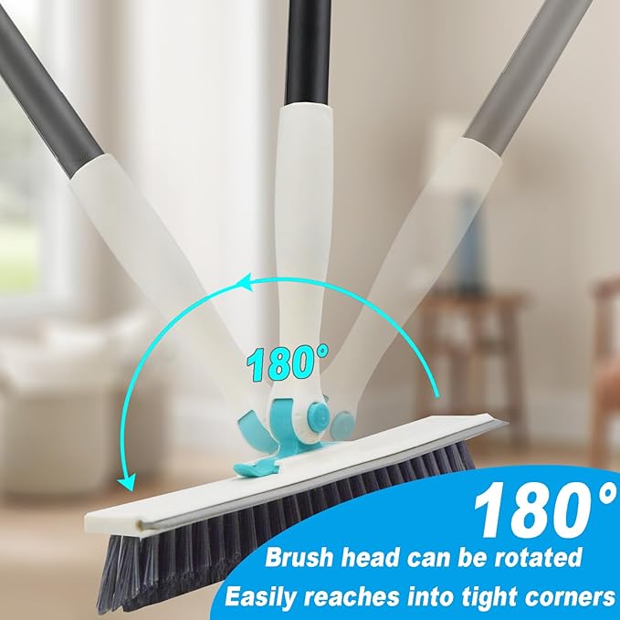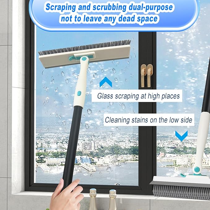 - 【2 In 1 Design】:Upgraded TPR flexible scraper, brush bristles clean in one scrape! Soft rubber material does not scratch tiles, glass, wall, easily scrape off residual sewage, soap scum, restore the bright surface, double the cleaning efficiency.