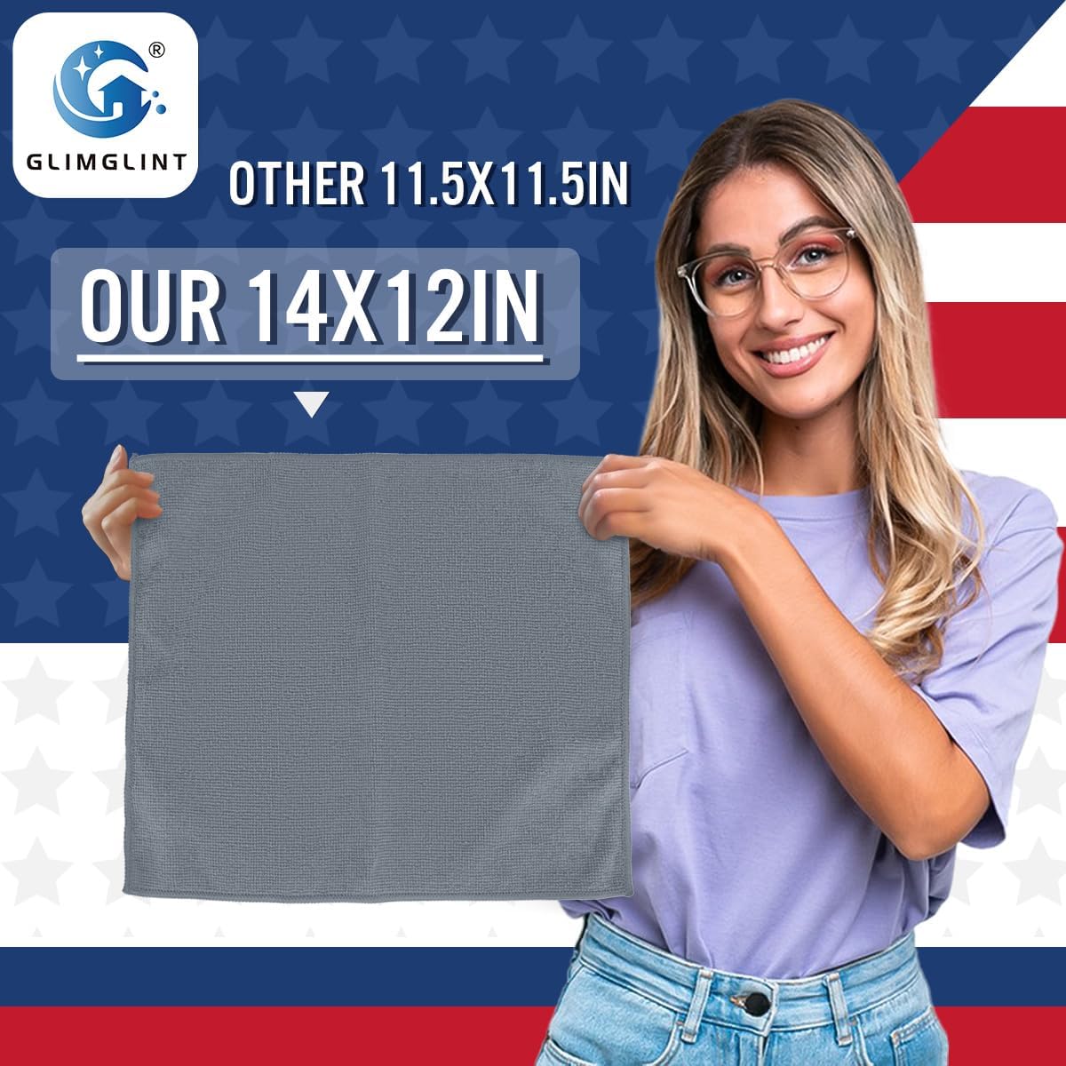 GLIMGLINT Grey Microfiber Cleaning Cloth, 12 Pack Cleaning Towels for Kitchen, Lint Free, Scratch-Free, Highly Absorbent, and Reusable Cleaning Rags for House, Window and Glass, Cars, 14"X12"