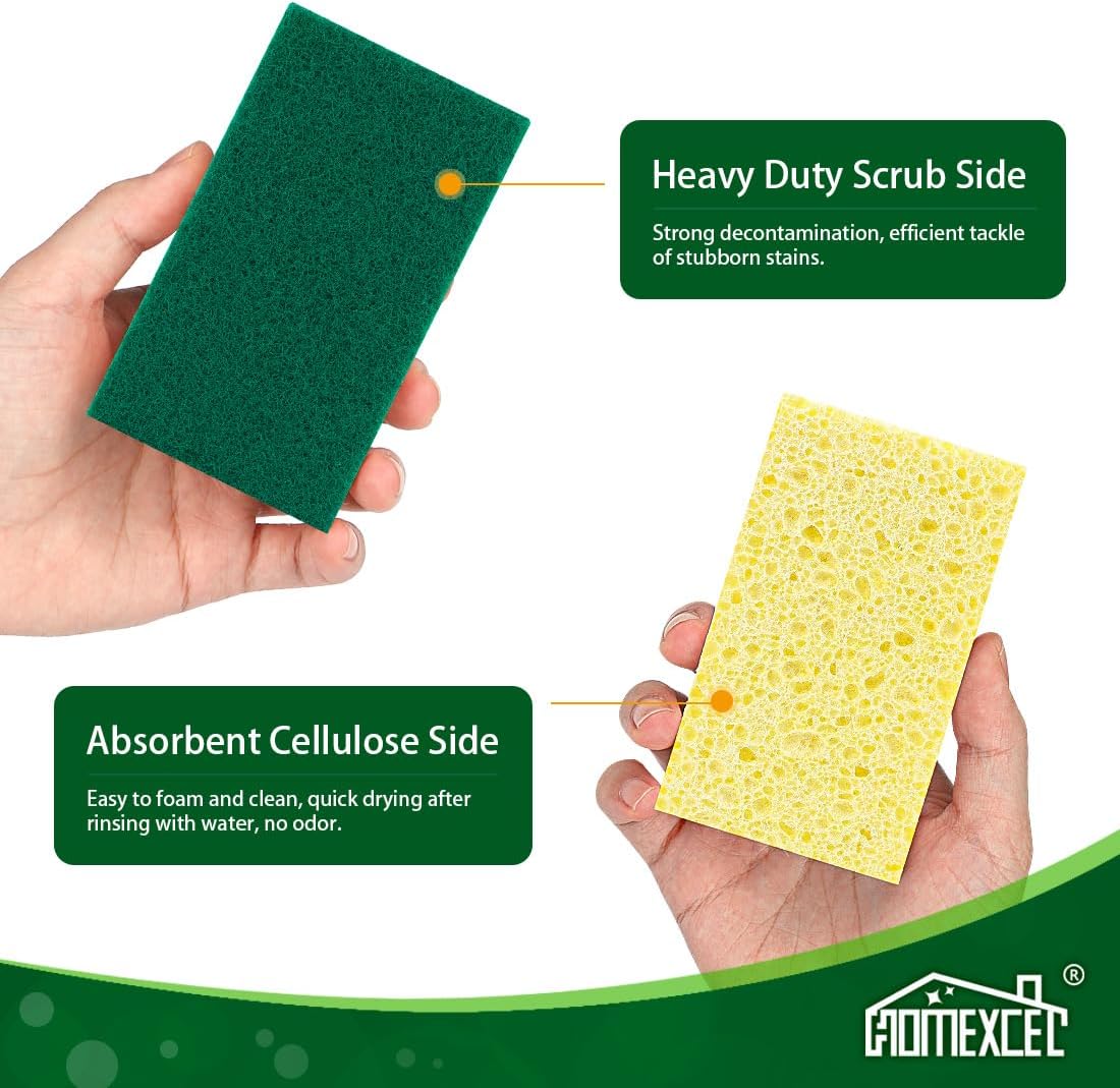 HOMEXCEL Sponges Kitchen 24pcs, Heavy Duty Sponges for Dishes, Scrub Cleaning Sponge for Non-Coated Cookware, Dishes, Pots, Pans, Dual Sided Dish Sponge for Kitchen, Household, Bathroom and More