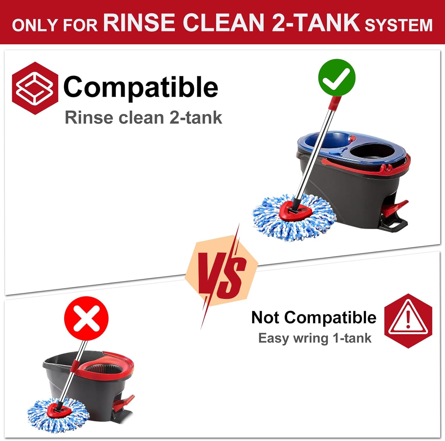 - 【For 2-Tank System】Includes 4 microfiber mop refills and 2 scrub brush. The mop heads replacements set combo is only compatible with 2-Tank system, NOT compatible with 1-Tanks EasyWring system.