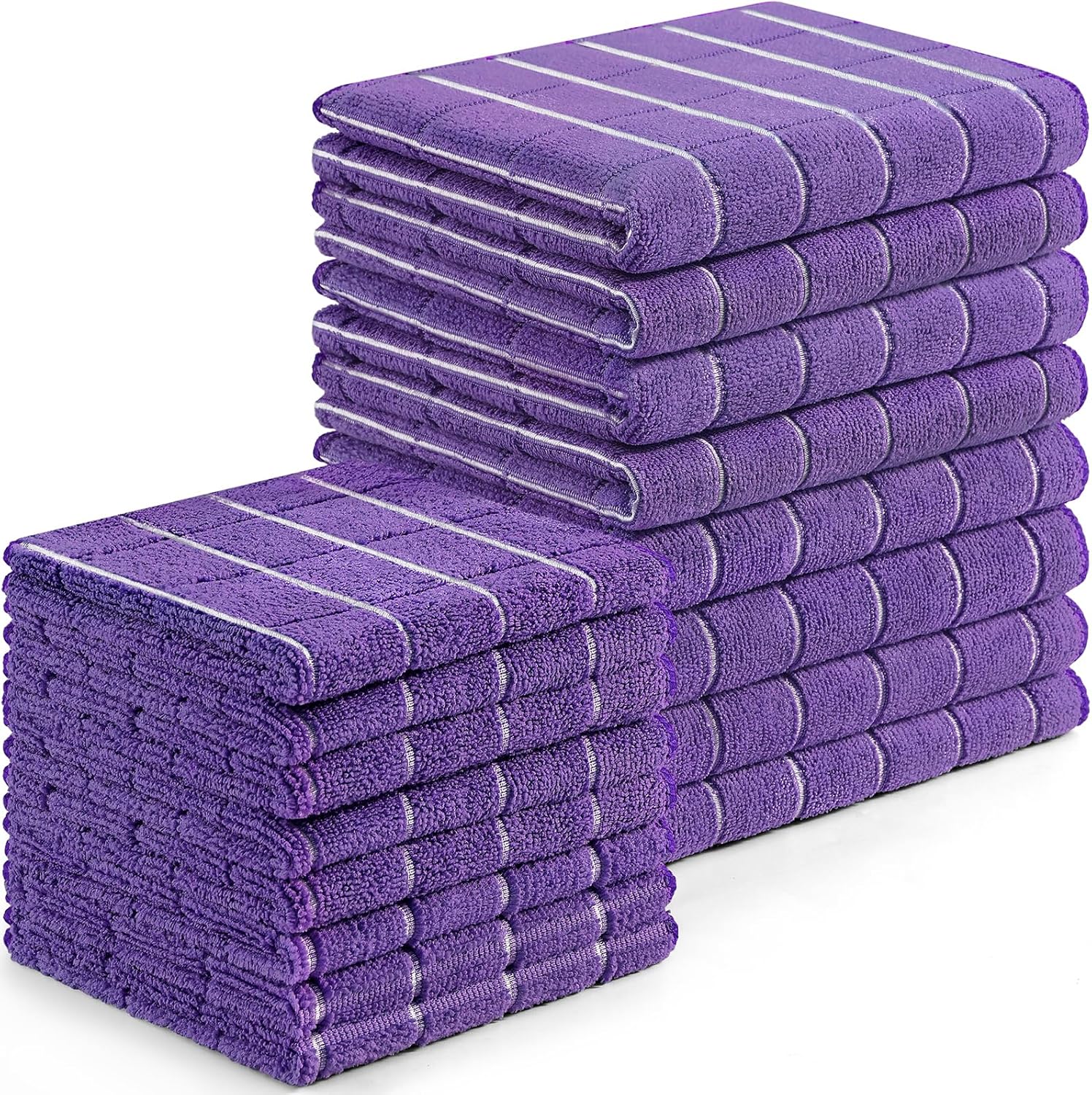 Homaxy Microfiber Kitchen Towels and Dishcloths Set, 16 Pack Soft and Absorbent Dish Hand Towels Bulk, 28 x 16 Inch & 12 x 12 Inch Quick Drying Rags for Washing Dishes, Purple
