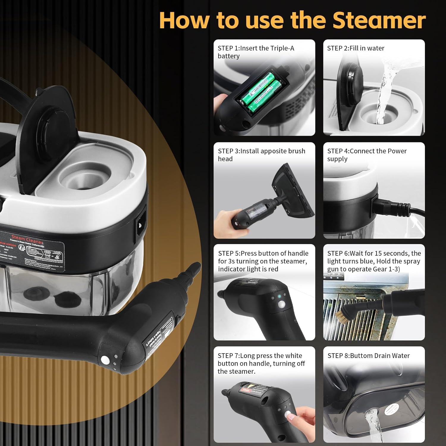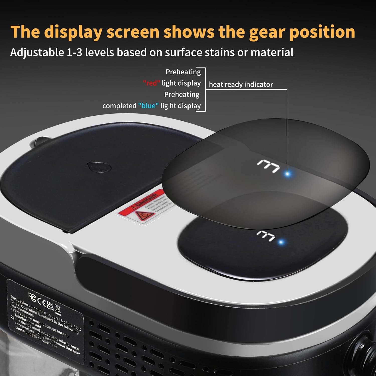- 【High-pressure steamer】Rapidly heating up within 10 seconds, the temperature can reach 221°F/105°C and the steam pressure reaches 3 Bar.strong steam power for deep and effective cleaning,effectively remove stubborn greasy dirt and stains.