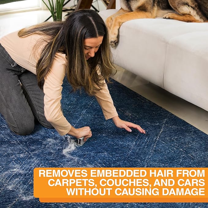 - REMOVES EVEN THE TOUGHEST EMBEDDED PET HAIR: The textured pad removes embedded hair that gets stuck in your couch or rug fibers that a regular lint or fur roller will leave behind. This helps reduce hair from ending up on your clothing or causing allergies for guests. Not just for pets, the FurDozer will also help to collect and clean human hair, lint, and other debris.