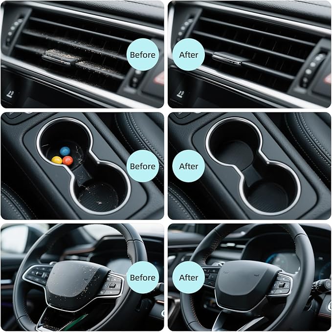 - 【Use Matters】Make sure your hands are dry and clean, take a piece of cleaning gel, knead it into a ball, press the cleaning gel slowly into the keyboard, car vents and uneven surfaces, then pull it out and the dust will be taken away by the cleaning gel.