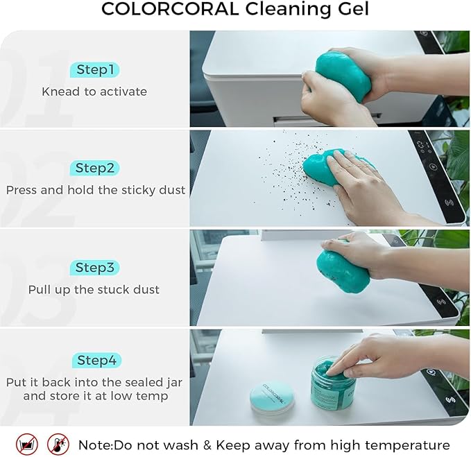 - 【Easy to Use】Cleaning gel, simple and convenient for PC/laptop keyboards and other uneven surfaces such as car vents, cameras, printers, telephones, calculators, instruments, speakers, air conditioners, TVs and other appliances in a cleaning kit.