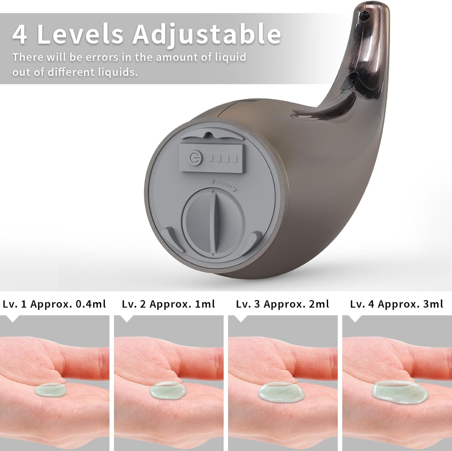 - 【Smart 4-Level Dispensing】This countertop soap dispenser offers 4 precision settings (0.4ml-3ml) - ideal for thick dish soap or light hand sanitizer. The kitchen dish soap dispenser helps reduce liquid waste while providing appropriate portions every time.