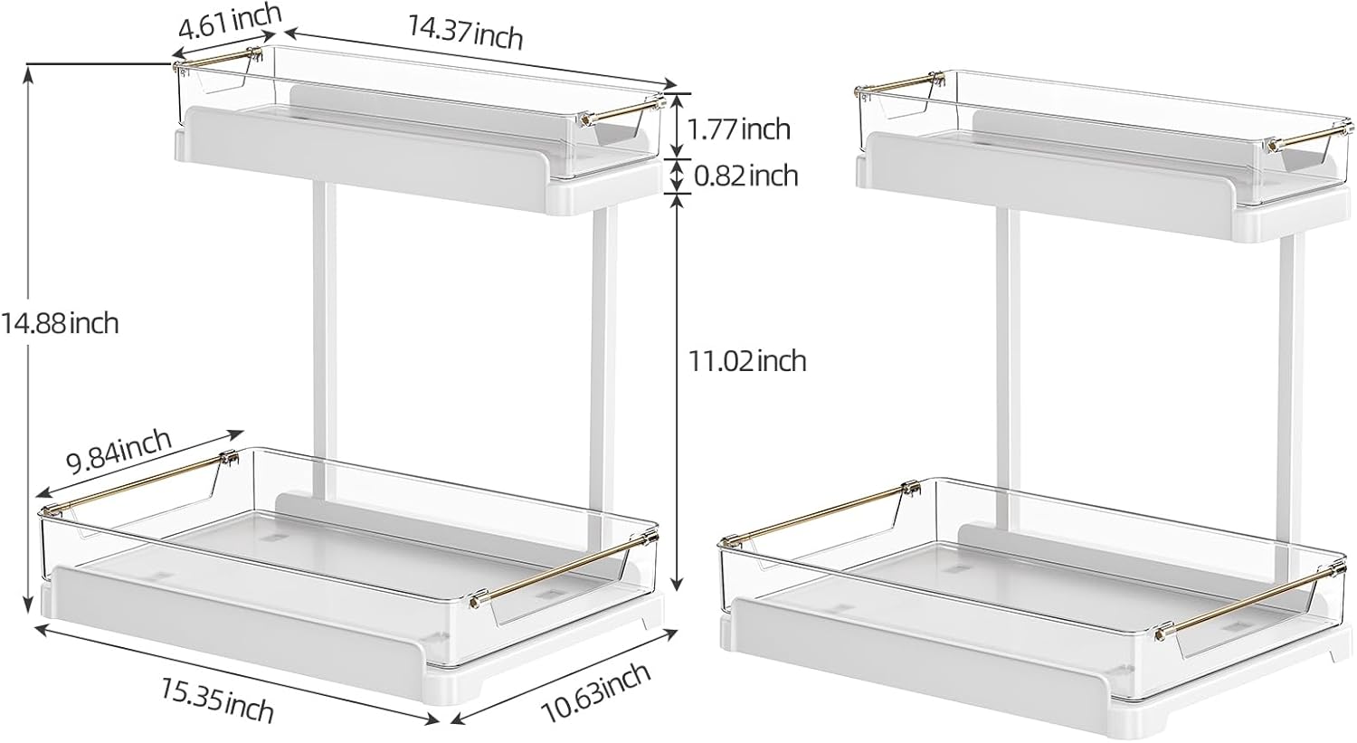 - 【2-Tier L Shape Design for Easy Access】 The 2 - tier L - shaped design allows easy access to tall items like cleaning supplies, toiletries, or snacks .The trays for both upper and lower tiers are removable and washable.