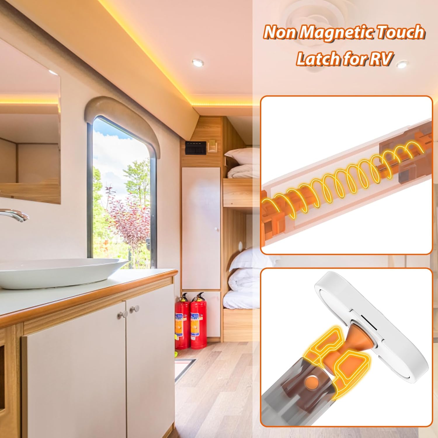 - Snap Push Catches: Snap design can prevent the cabinet door from opening automatically. No weak magnetic attraction problem. Push open snap catch can easily solve your problem of cabinet popping out when driving on bumpy roads in the RV, also be used in drawers with metal, allowing you to use it anywhere in your home.