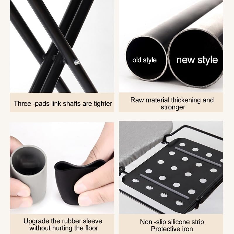 - Adjustable Height: The height can be easily adjusted, with 6 levels of adjustment, so you can adjust the appropriate height for use at any time. The ironing board is fixed in place when in use and closed securely when not in use.