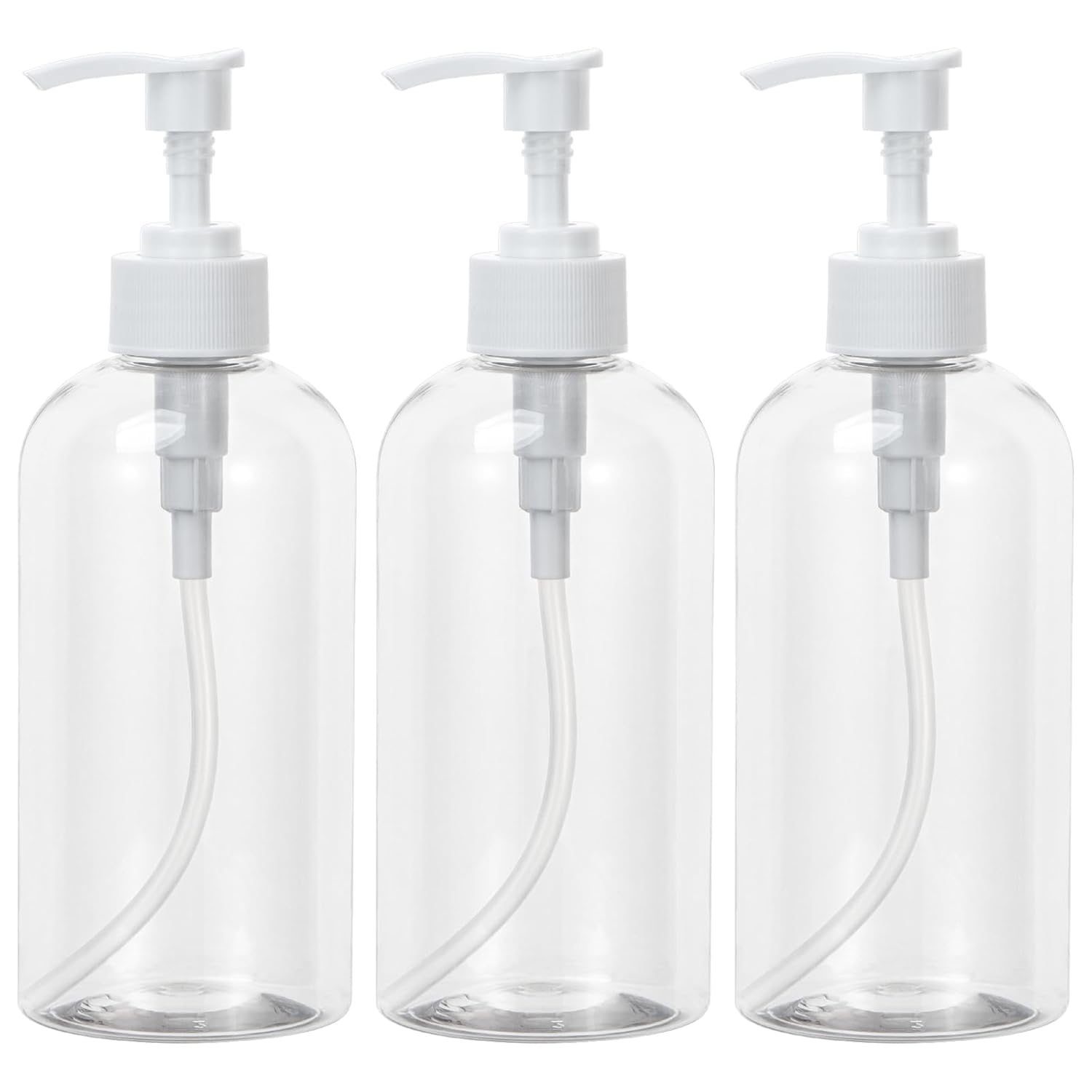 Yebeauty Plastic Pump Bottle, 3 Pack 13.5oz/400ml Stylish Shampoo Bottles Refillable Hand Soap Dish Soap Dispenser with Press for Massage Oil, Liquid Hand, Clear