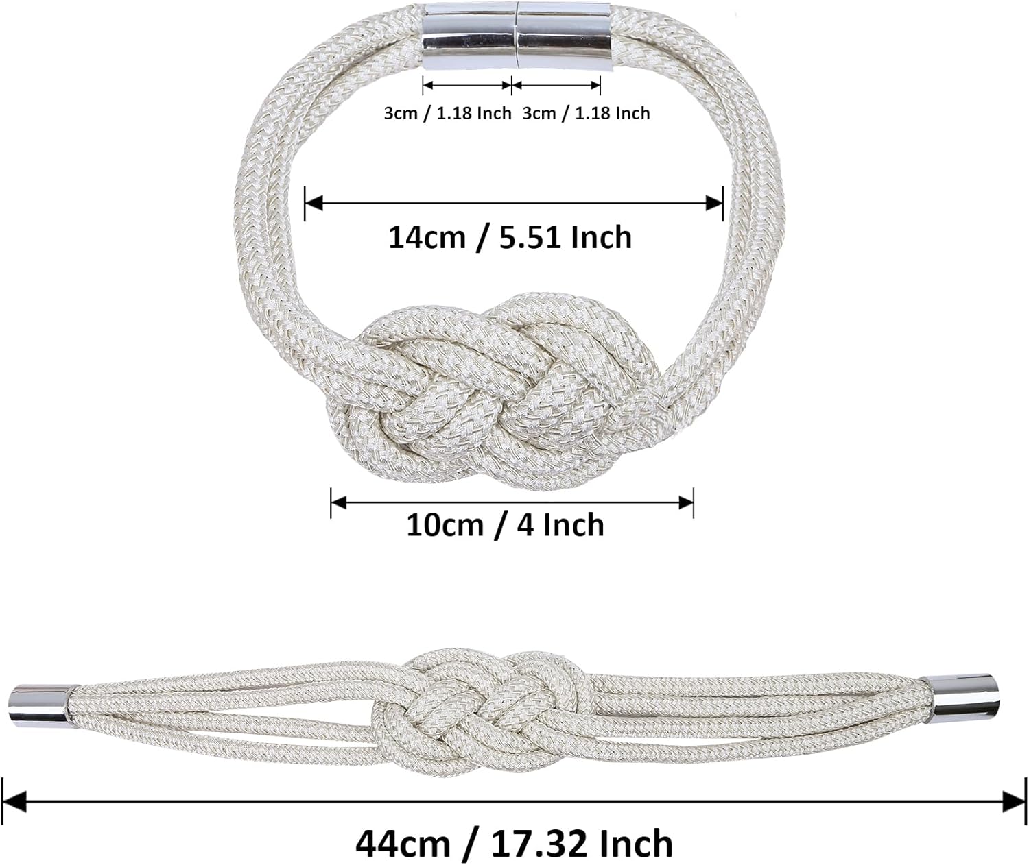2 Pack Magnetic Curtain Tiebacks, Hand Weave Rope Knot Decorative Curtain Holdbacks for Home & Office Thin Window Drapery (Beige,2P)