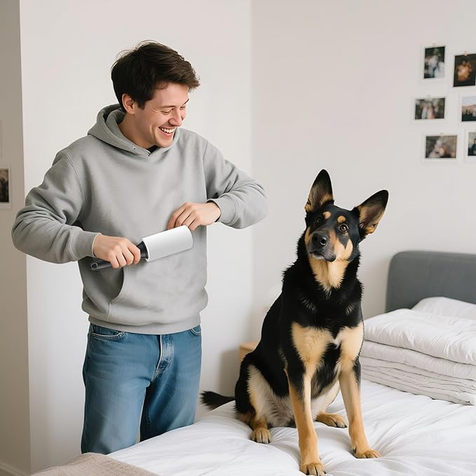 - Extra-Sticky Pet Hair Removal- 600 adhesive sheets with strong grip easily lift embedded cat/dog hair, lint, and dust from clothes, laundry, and furniture without damaging fabrics.