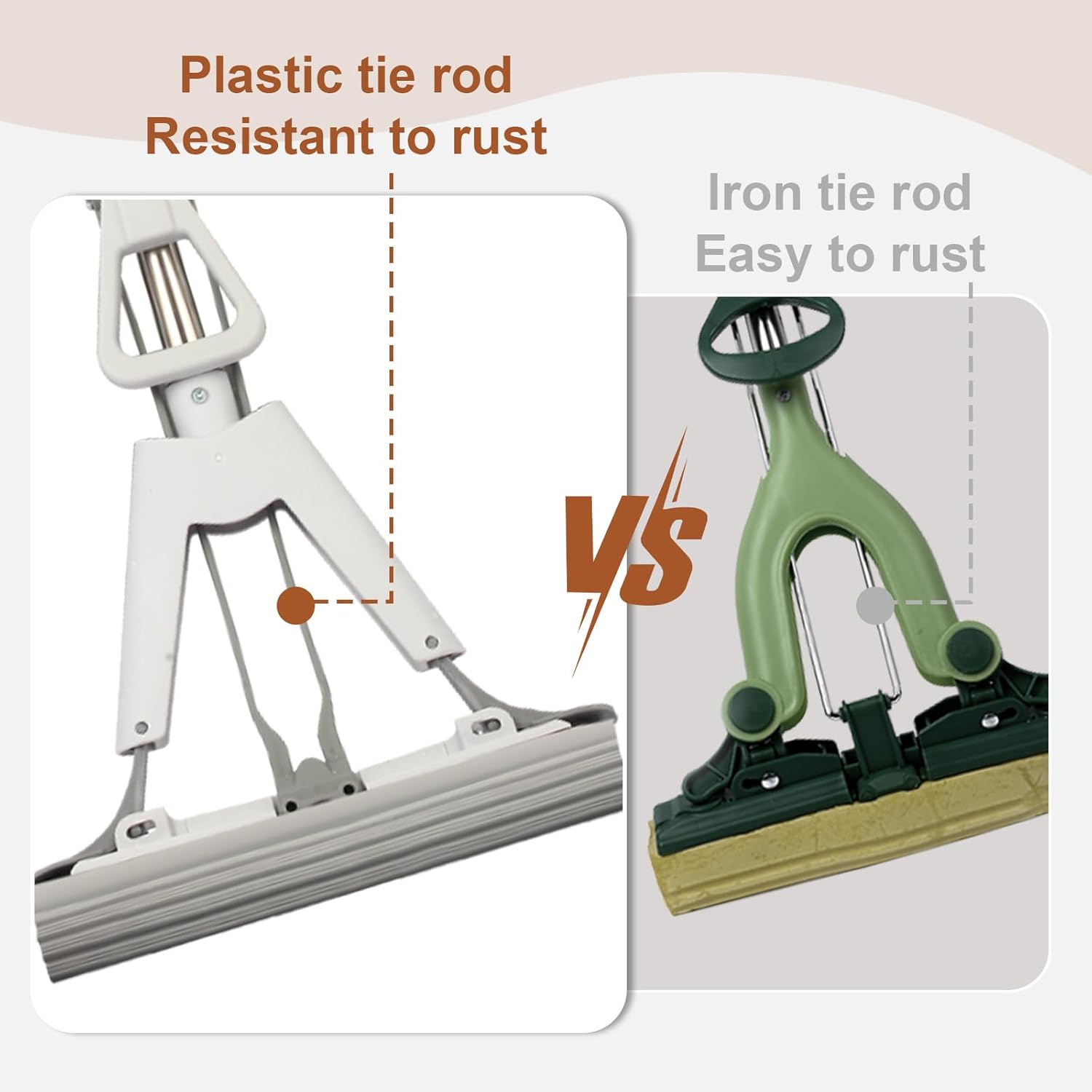 - SUPER ABSORBENT SPONGE HEAD: Made with high-quality sponge material, it absorbs water strongly and cleans stains effortlessly. Suitable for various floor types such as wood, marble, and tiles, ensuring excellent cleaning results.