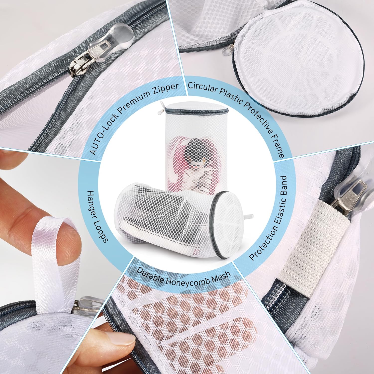 - Safeguard Your Shoes and Washing Machine: Crafted from durable 120g honeycomb mesh for long-lasting use, this shoe bag features 2 circular plastic protective frames (at the bottom and top) to maintain shape. The upgraded Auto-Lock zipper with a protective elastic band prevents accidental opening during washing. It effectively stops shoes from rubbing or bumping inside the machine, reducing damage to both shoes and the drum—extending their lifespan.