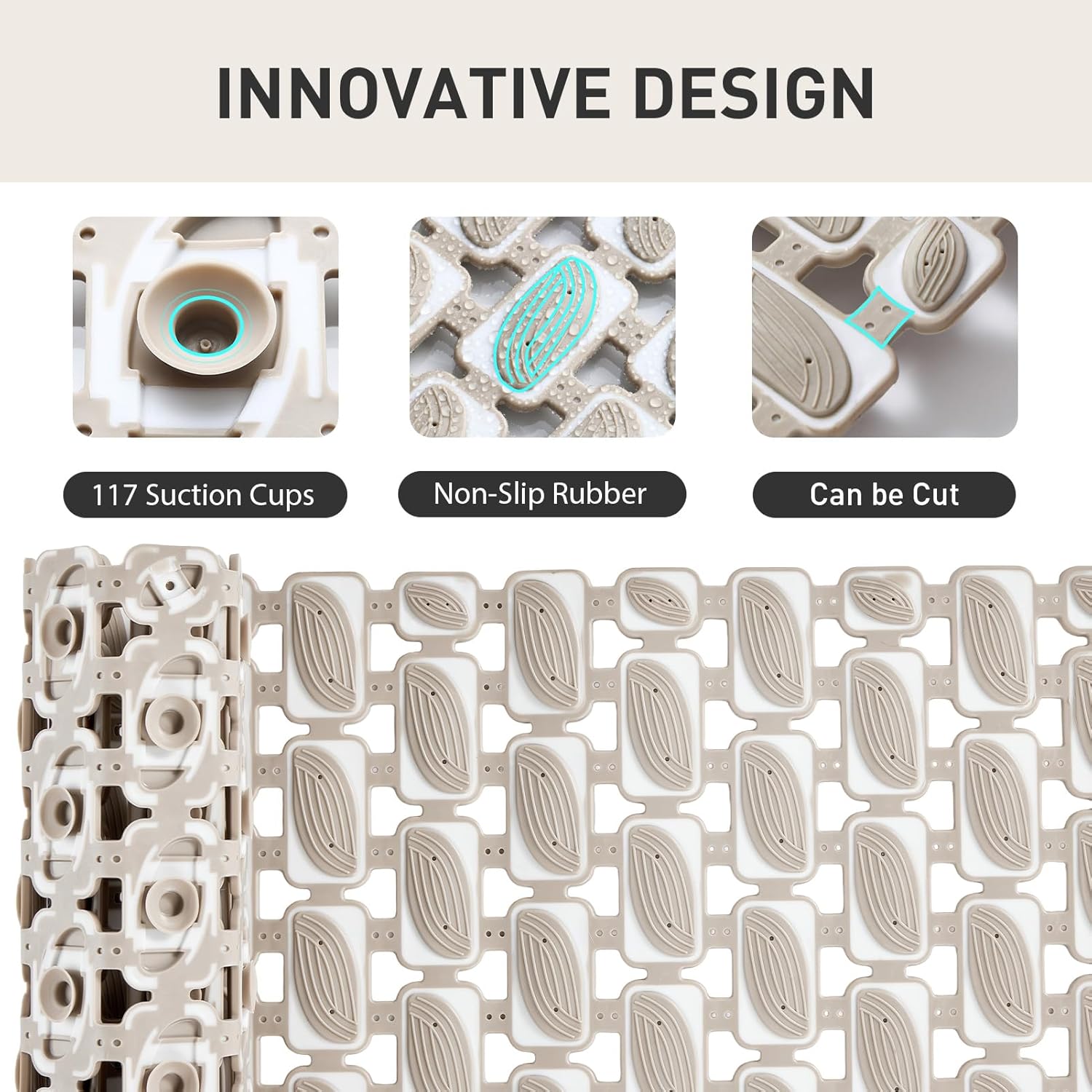- ✅【Superior Anti-Slip Performance】Non slip bath mat for shower made from high-grip TPE+PP material with a textured surface, Our non slip shower mat features 117 powerful suction cups ensures maximum traction to prevent slips and falls, bathtub mat non slip keeping you safe in wet bathroom/bathtub or aquarium areas