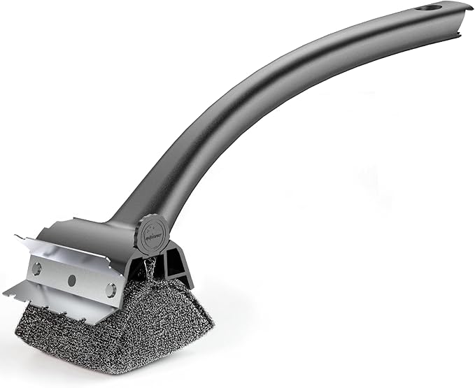 - 【2-in-1 BBQ Brush】The scraper easily removes tough stains and food residue from the grill. The detachable brush head can be easily removed and placed in the dishwasher for cleaning.Note: Before use, thoroughly soak the steel sponge head in cold water, then gently wipe away any dirt.