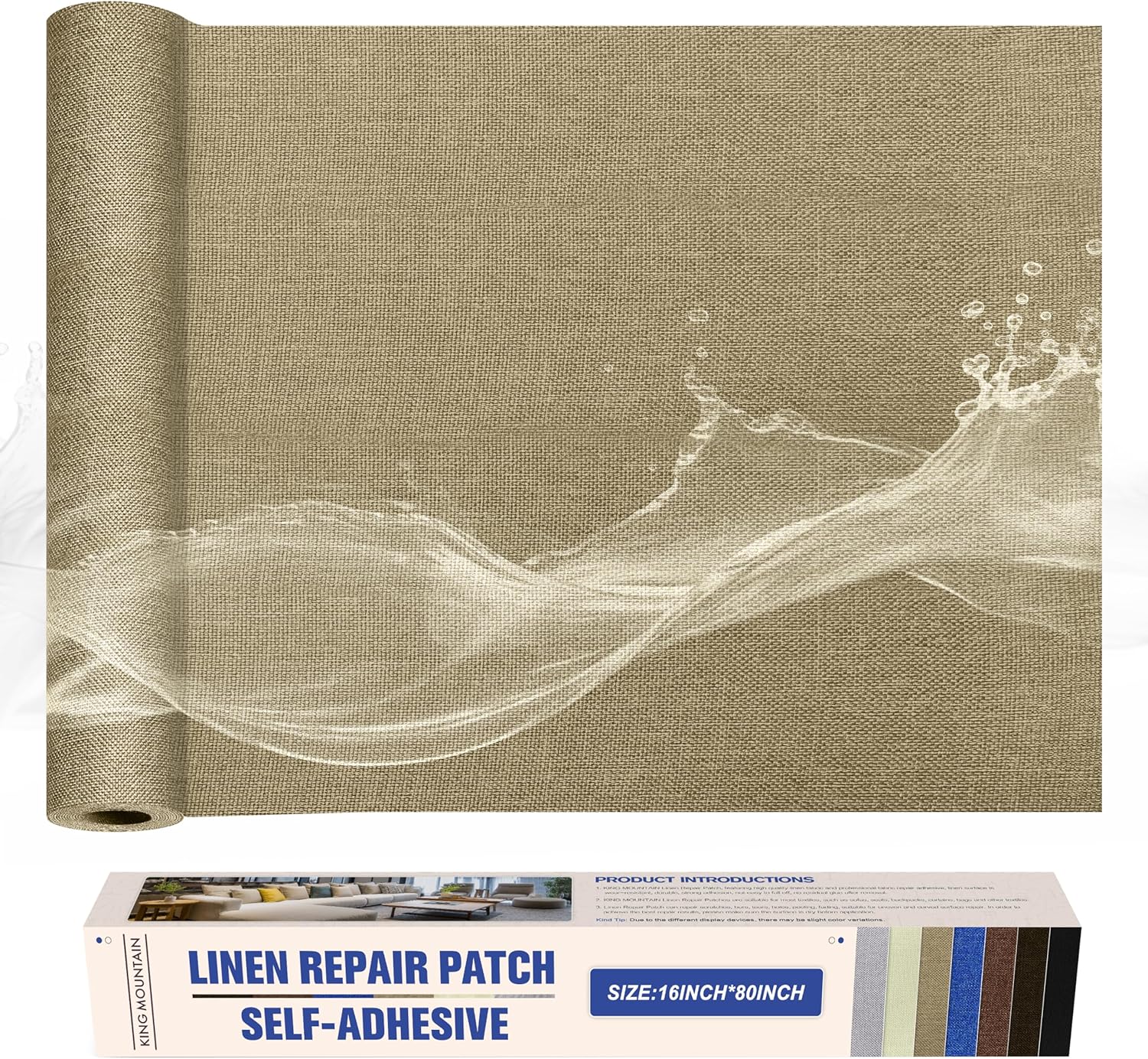 KING MOUNTAIN Linen Repair Patches, Self-Adhesive Linen Fabric Patches,16X80 inch Extra Size, Multi Color, Can be Used for Linen Sofa Repair and Linen Clothes Repair (Flaxen)