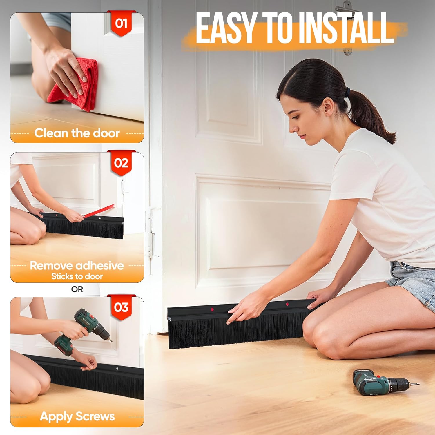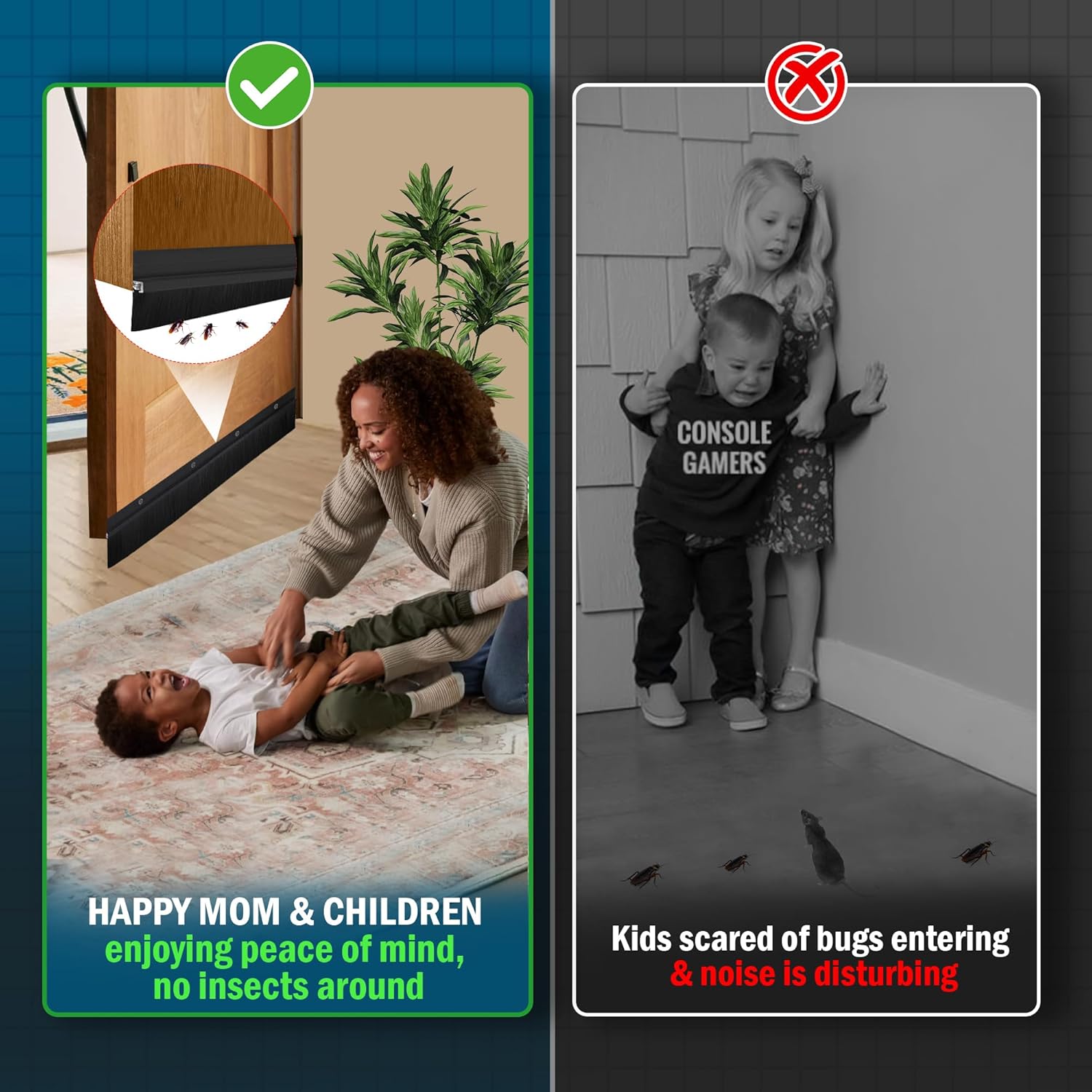 - 𝗕𝗹𝗼𝗰𝗸𝘀 𝗗𝘂𝘀𝘁, 𝗕𝘂𝗴𝘀 & 𝗥𝗼𝗱𝗲𝗻𝘁𝘀: Acts as a reliable door seal strip bottom and door gap filler bottom, blocking dust, insects, and allergens to keep your home clean and fresh. Can also be paired with excluder mesh for rodents for extra protection against pests.