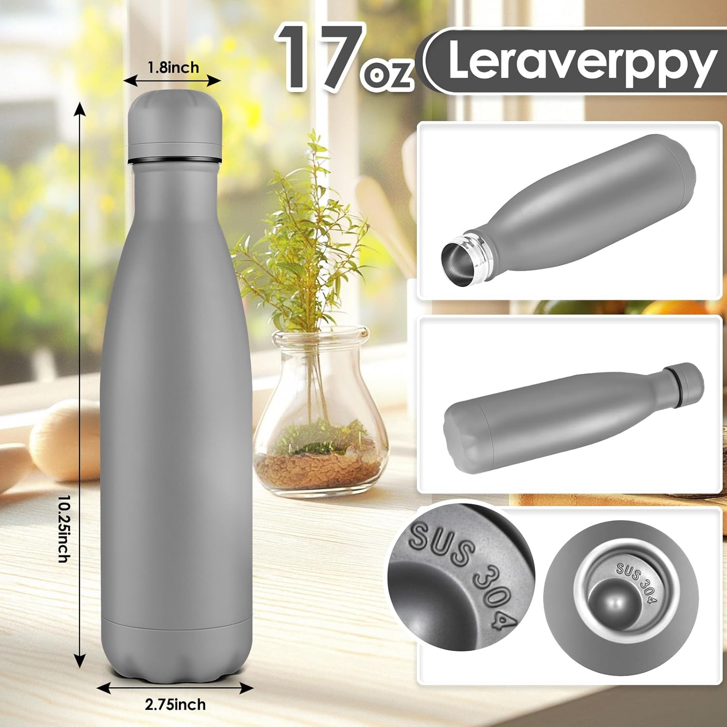 - 《Food-Grade 18/8 Stainless Steel Liner》Our water bottle is made of 18/8 food-grade known as 304 stainless steel.BPA Free,Non-toxic,No metallic taste,safe and healthy for all your water needs.Moms can trust our 304 stainless steel water bottles — designed to keep your little one’s drinks safe and healthy.Drink in the joy of every drop in your healthy life.