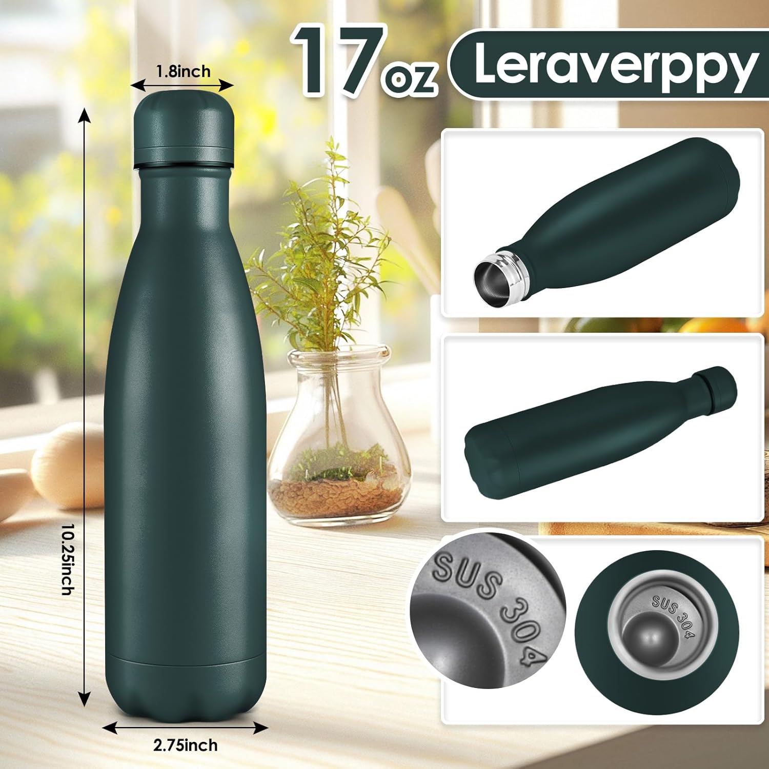 17oz Cola-Bottle Shaped Stainless Steel Leak-proof Water Bottle,Double Wall Vacuum Insulated Metal,Travel Mug For Sports Indoors & Outdoors,BPA-Free Kids Flasks,Army Green(4Pack)