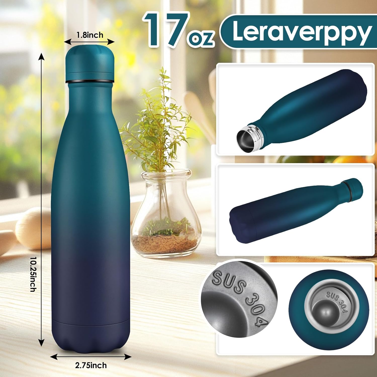 - 《Food-Grade 18/8 Stainless Steel Liner》Our water bottle is made of 18/8 food-grade known as 304 stainless steel.BPA Free,Non-toxic,No metallic taste,safe and healthy for all your water needs.Moms can trust our 304 stainless steel water bottles — designed to keep your little one’s drinks safe and healthy.Drink in the joy of every drop in your healthy life.