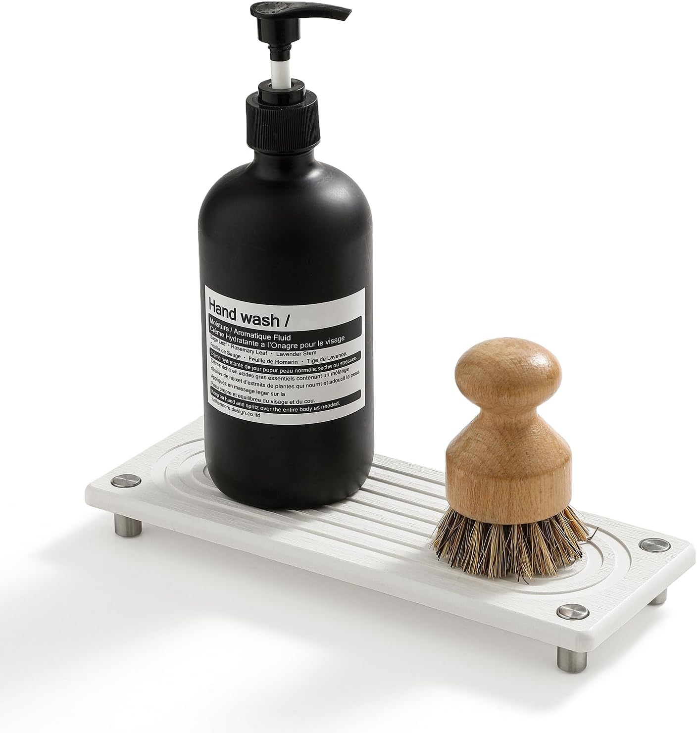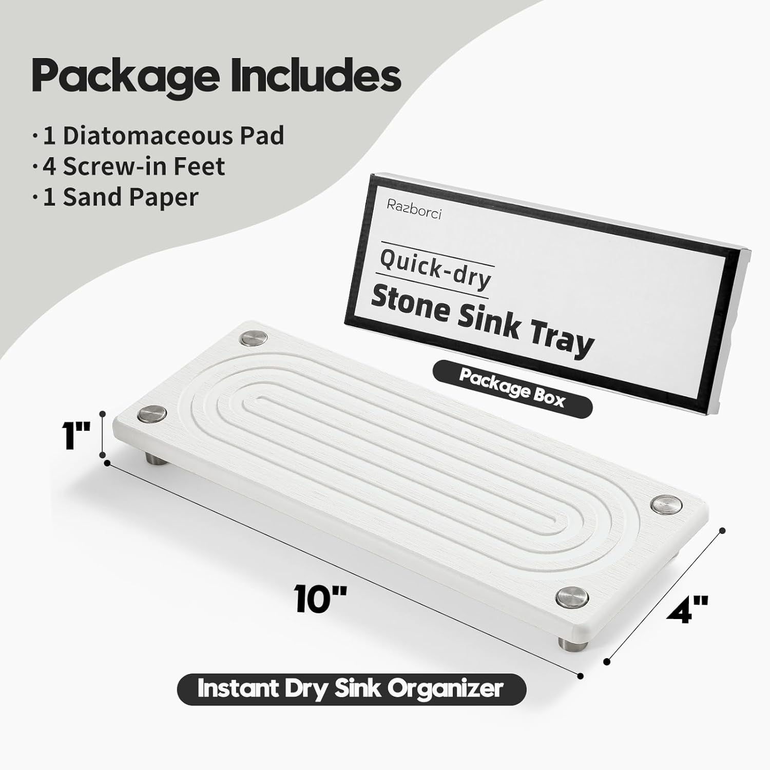 - 【Multifunctional Water Absorbing Stone Tray for Sink】 Using this tray for your soaps and brushes in the bathroom, or by the kitchen sink. The fast drying sink caddy provides you with a neat and orderly space for your home.