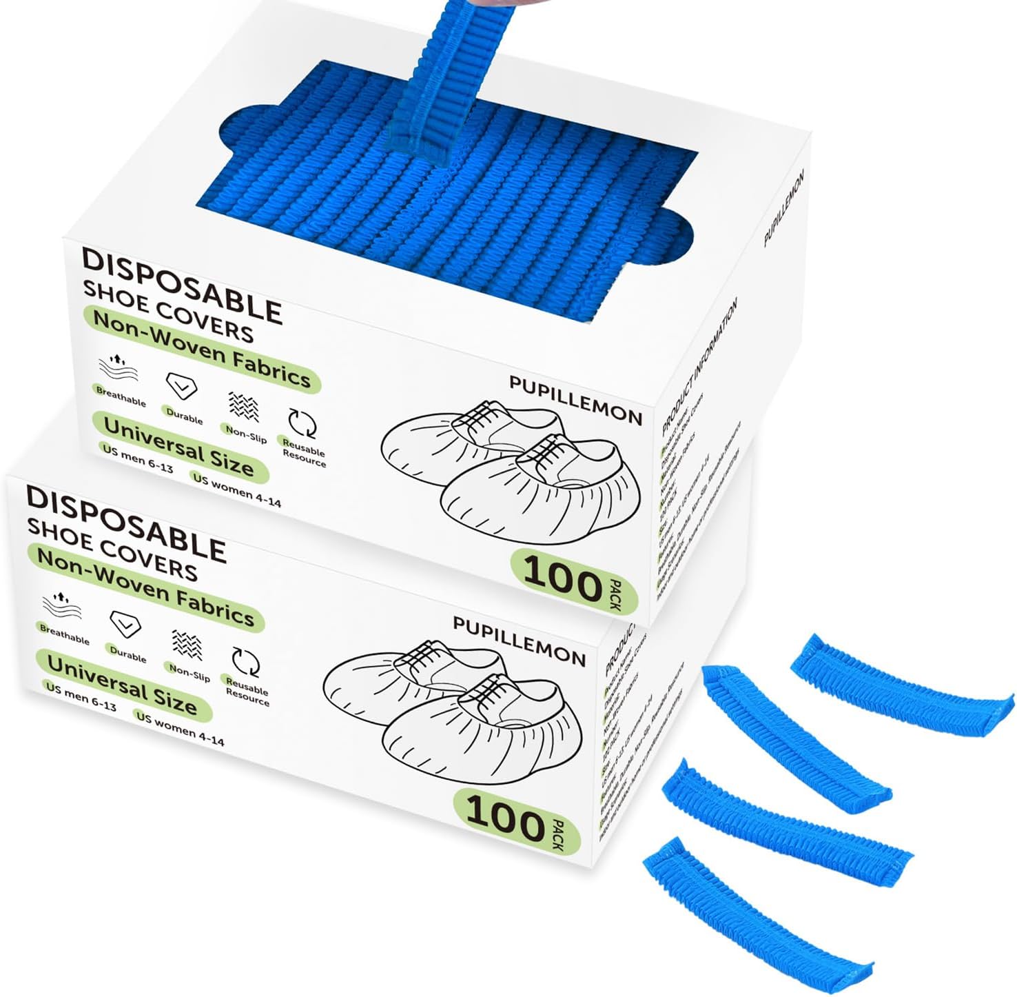 200Pcs(100 Pairs) Non-Woven Shoe Covers Disposable Non Slip for Indoors, Breathable | Durable | Boot Covers, Fits Up to Size 13 US Men (Blue)