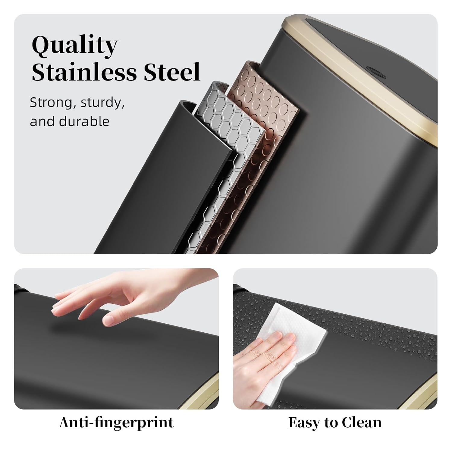 - Stainless Steel Armor & Hassle-Free Cleaning: Premium stainless steel exterior resists water, fingerprints, and corrosion. Seamless inner bucket prevents leaks, while the wipe-clean surface eliminates sticky residue in seconds.