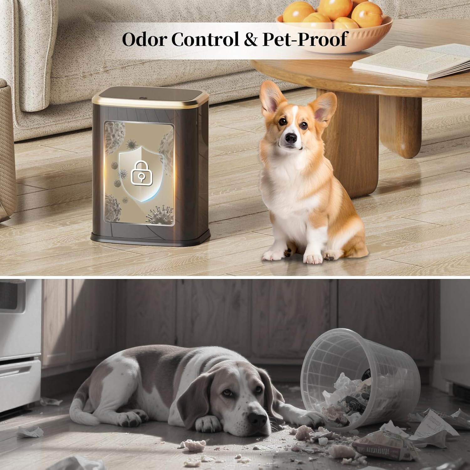 - Odor-Blocking Secure Closure: Snug-fitting lid creates a tight seal when closed, trapping unpleasant smells and preventing your dogs getting into it. Removable inner bucket and trash bag fixing hole allow easy liner replacement, keeping spaces like living rooms and dorm rooms fresh and tidy.