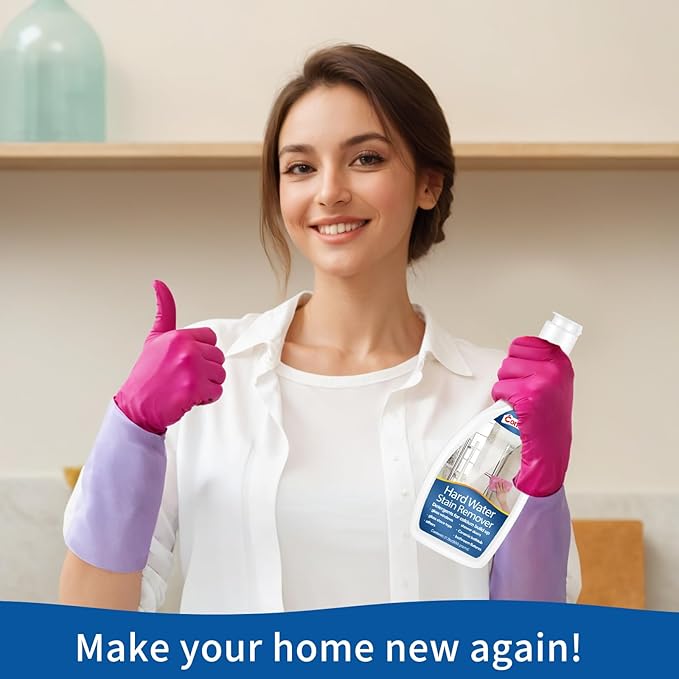 - 【Multi-Purpose Hard Water Cleaner】Hard water cleaner works on every water-stained surface and environments. Including window film remover, shower door cleaner, toilet bowl cleaner, tub cleaner, pool calcium remover, rust remover for stainless steel, stone cleaner, shower grout cleaner and tile stain remover etc. It can provide a comprehensive cleaning solutio.