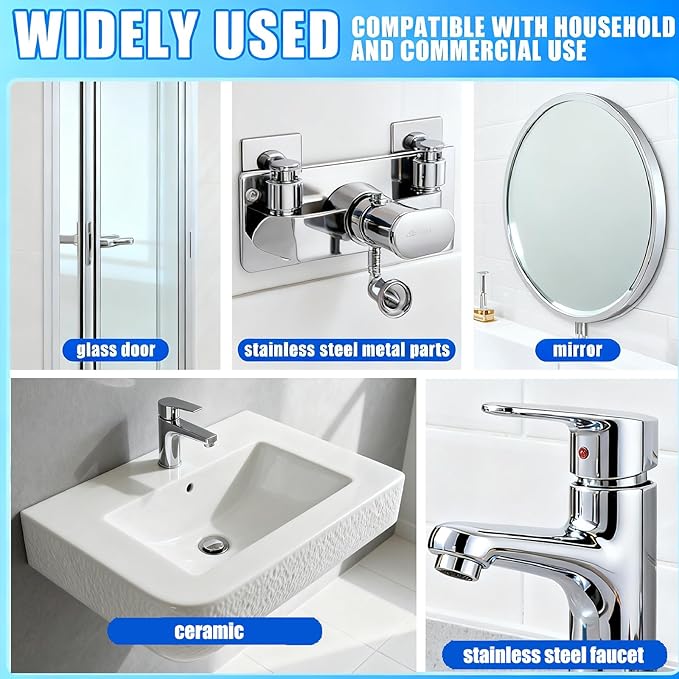 - 【Restore Bright Luster】 Hard water stain remover is for use in your home or commercial space. It quickly awakens surfaces that have been stubbornly coated with water stains, restoring their original bright luster in an instant. Whether it's the bathroom mirror, faucet, or the shower glass door, hard water shower door cleaner can quickly make them clear and pristine.