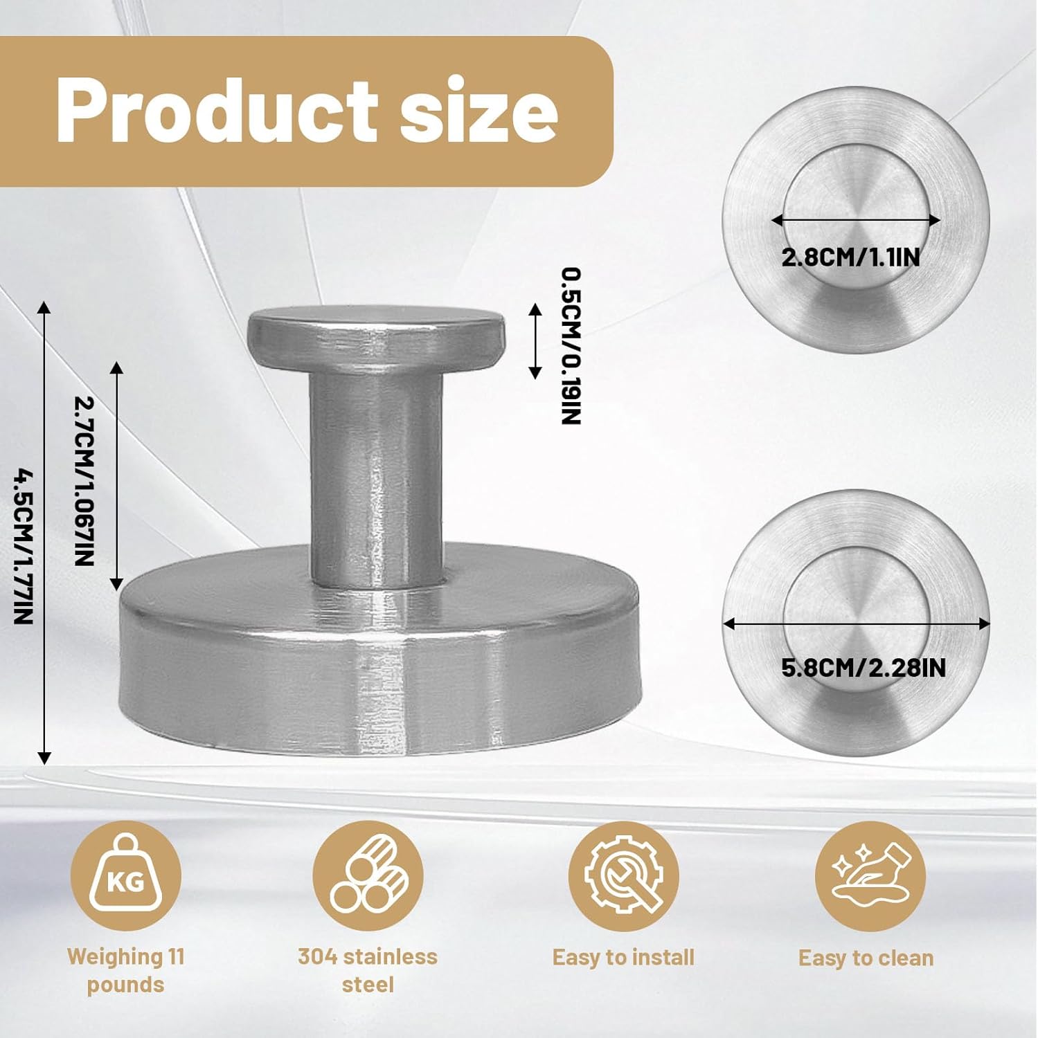 - 【Sleek and Space-Saving Design】 With a compact 5.5 cm size, this elegant hook not only saves space but also adds a modern touch to any room. Ideal for bathrooms, bedrooms, kitchens, or offices, it complements various decor styles while keeping your belongings tidy.