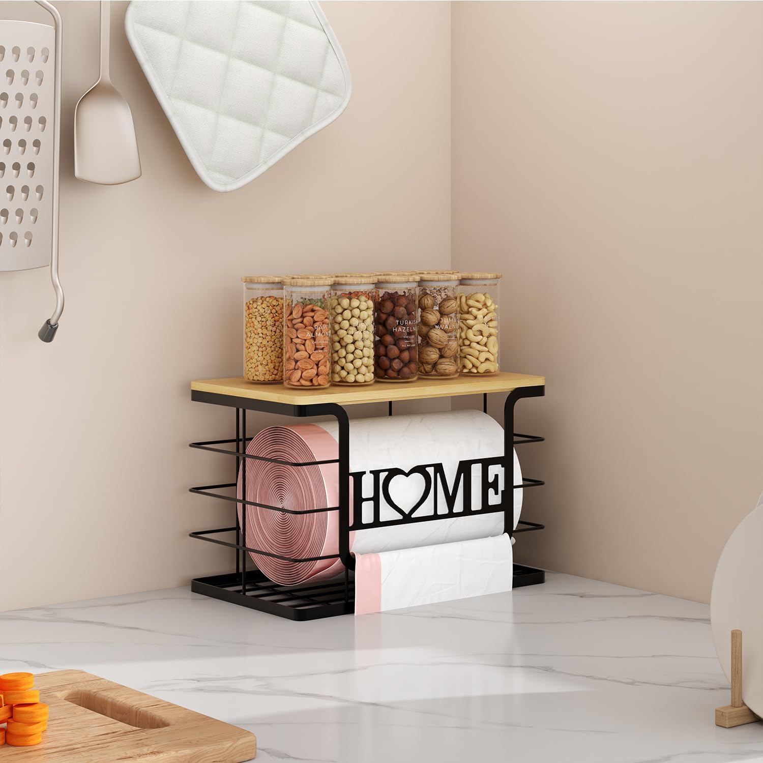 Trash Bag Holder, Thipoten Trash Bags Dispenser with Bamboo Top, Suitable for Garbage Bags Purchased Online or Supermarket, Perfect Storage Organizers for Cabinet, Under Sink (Black, Large)