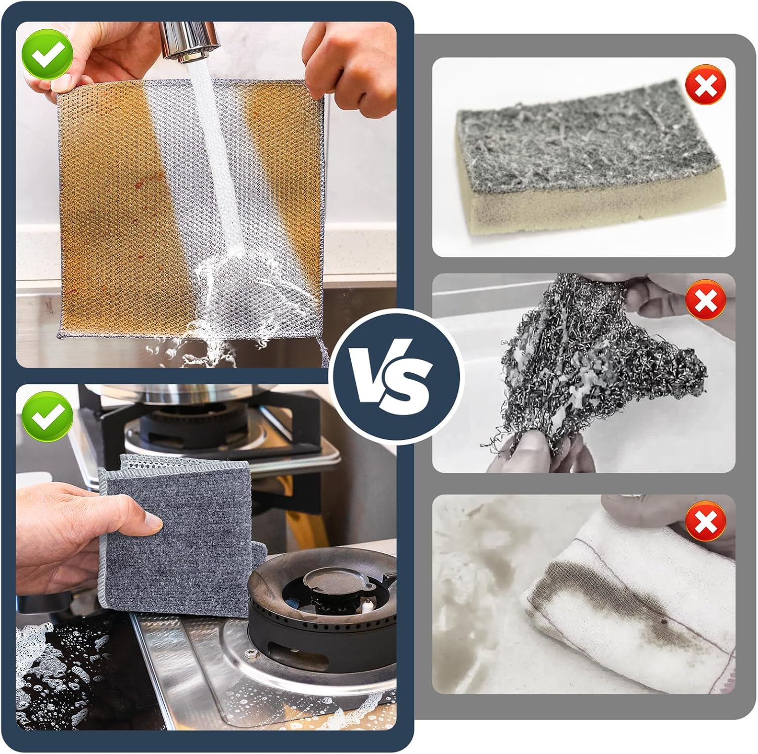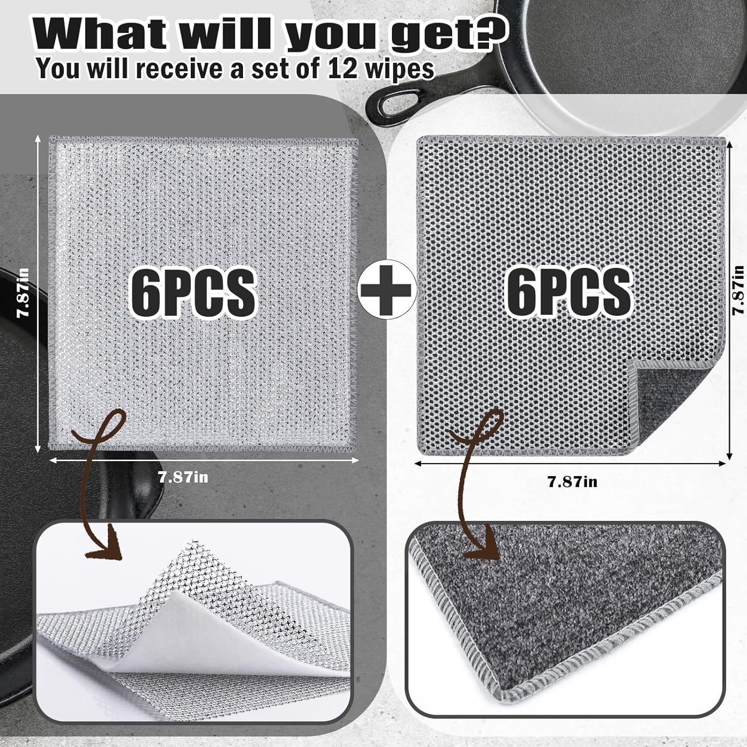Navona 12Pack Steel Wire Dishcloth, Include 6Pack Triple-Layer Steel Wire Cleaning Cloth, 6Pack Dry and Wet Dual-Use Steel Wire Cleaning Cloth, Powerful Cleaning for Cookware, Sinks, Dishes