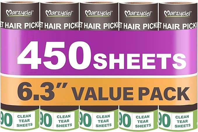 - Large Surface Area, High Sheet Count: Includes one cotton roller and 5 packs of 90 sheets each, totaling 450 sheets. With a width of 6.3 inches (16 cm), this eco-friendly and odorless extra large lint roller is perfect for clothing, sofas, carpets, pet beds, floors, and other furniture. Gentle on fabrics, it is the ideal choice for pet owners.