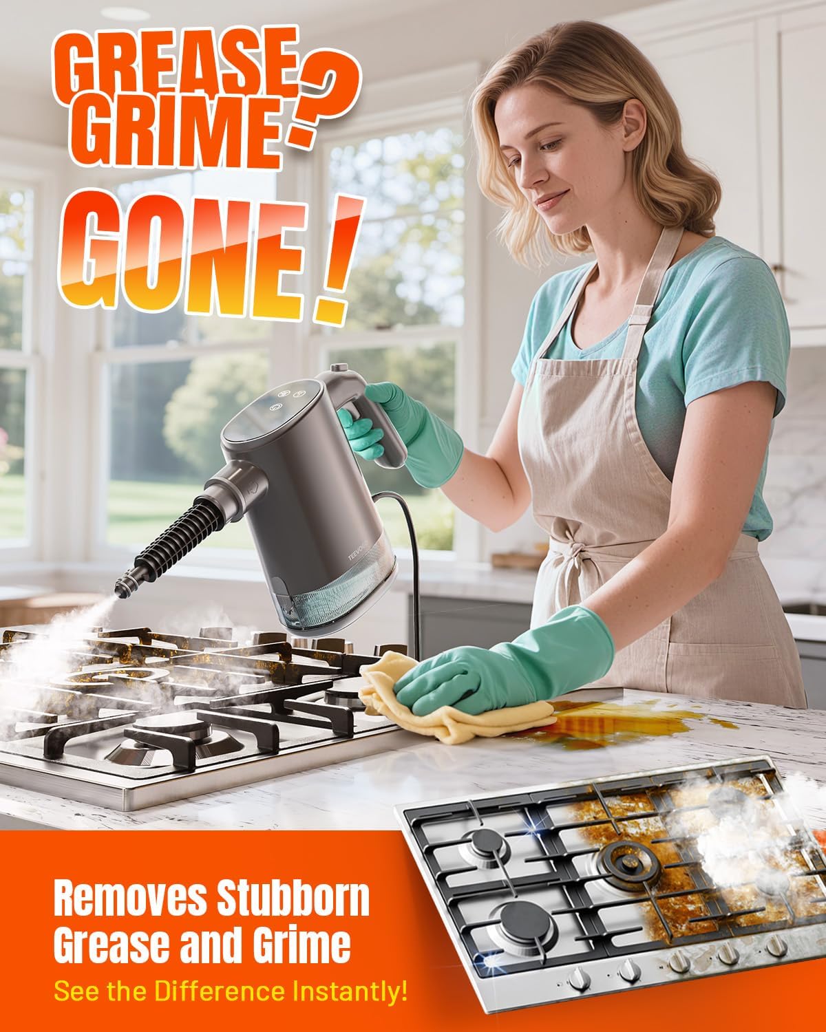 - Powerful & Continuous Steam: This handheld steamer for cleaning generates strong, pressurized steam to break down grease, grime, and sticky messes on contact without dripping. The steam cleaner for home tackles multi-surface messes like tile, kitchen counters, grout lines, and more with high-efficiency cleaning—with zero chemicals needed