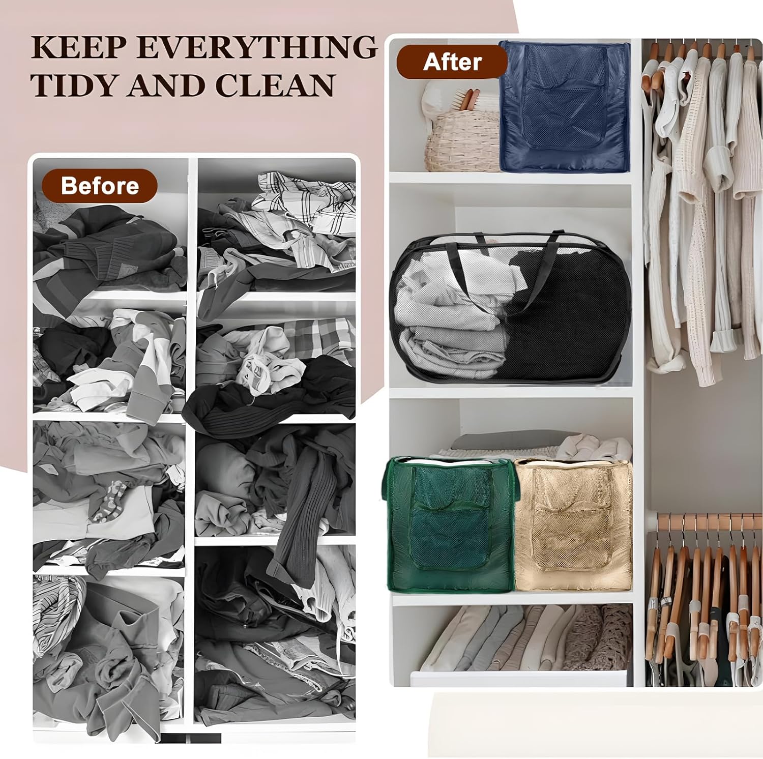 - 【MULTI-PURPOSE】 Multiple color combinations storage bins are home essentials to save storage space and keep everything organized. Large enough baskets for organizing clothes, kid’s toys, nursery room items, extra linens, laundry, towels, sheets, pantry and more.