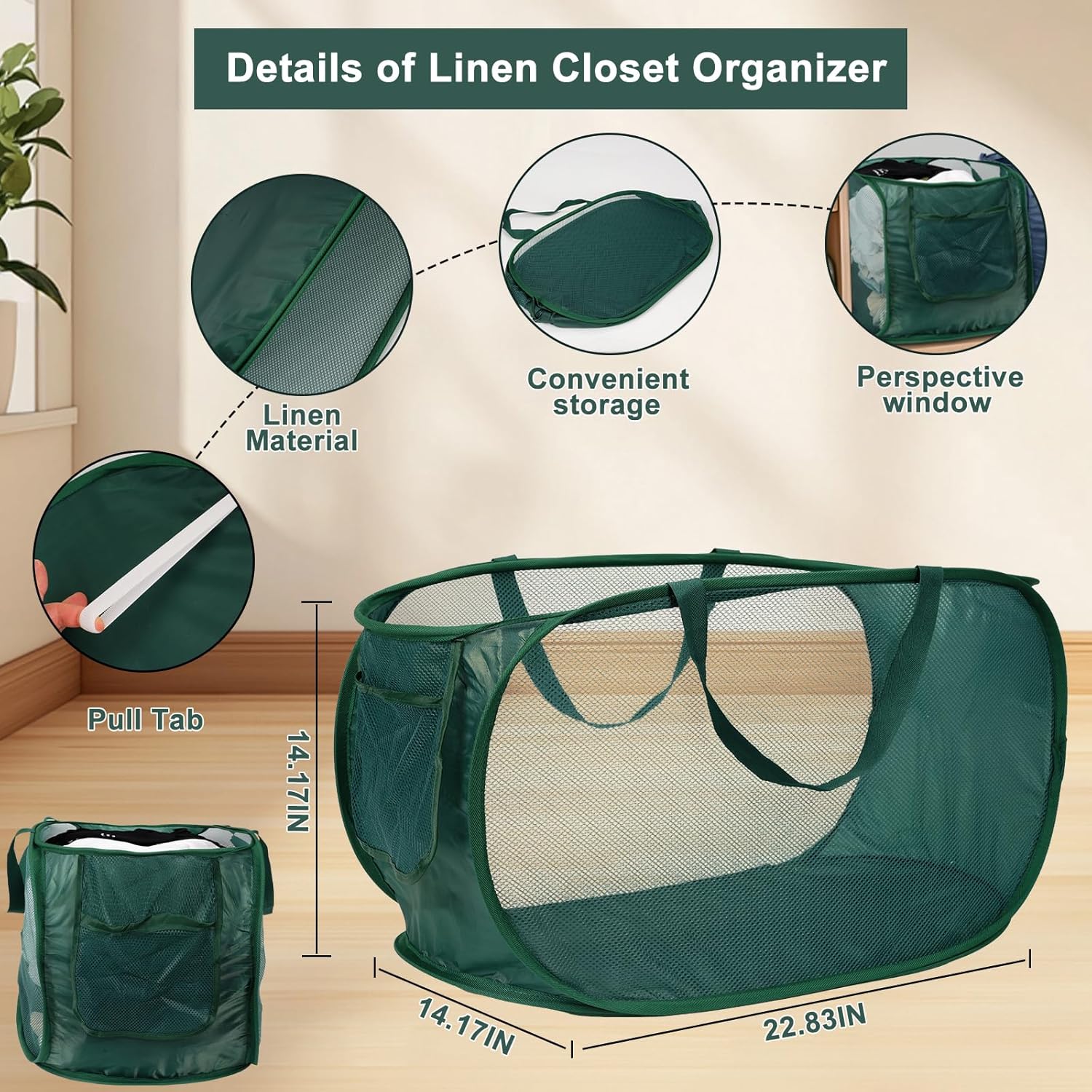 - 【Eco-Friendly Material 】 Made of high quality non woven fabrics, environmentally friendly materials, breathable and wear-resistant, no irritating odor. Fabric boxes come in sets of 2, each measuring 22.8L x 14.2"W x 14.2"H.
