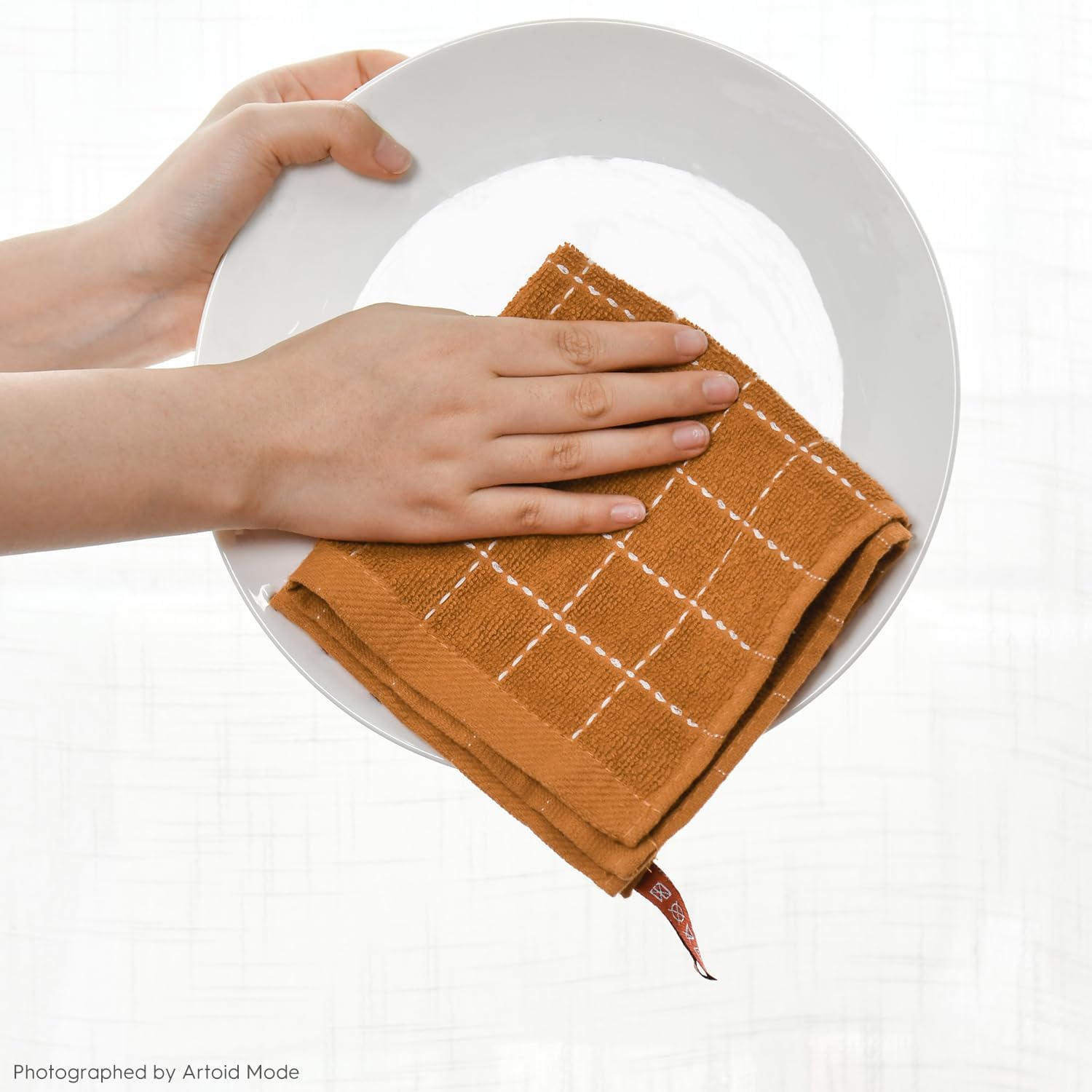 Artoid Mode Checkered Designed Cotton Black Caramel Terry Kitchen Dish Cloths, 12x12 Inch Soft Absorbent Quick Drying Cleaning Kitchen Rags Set of 6