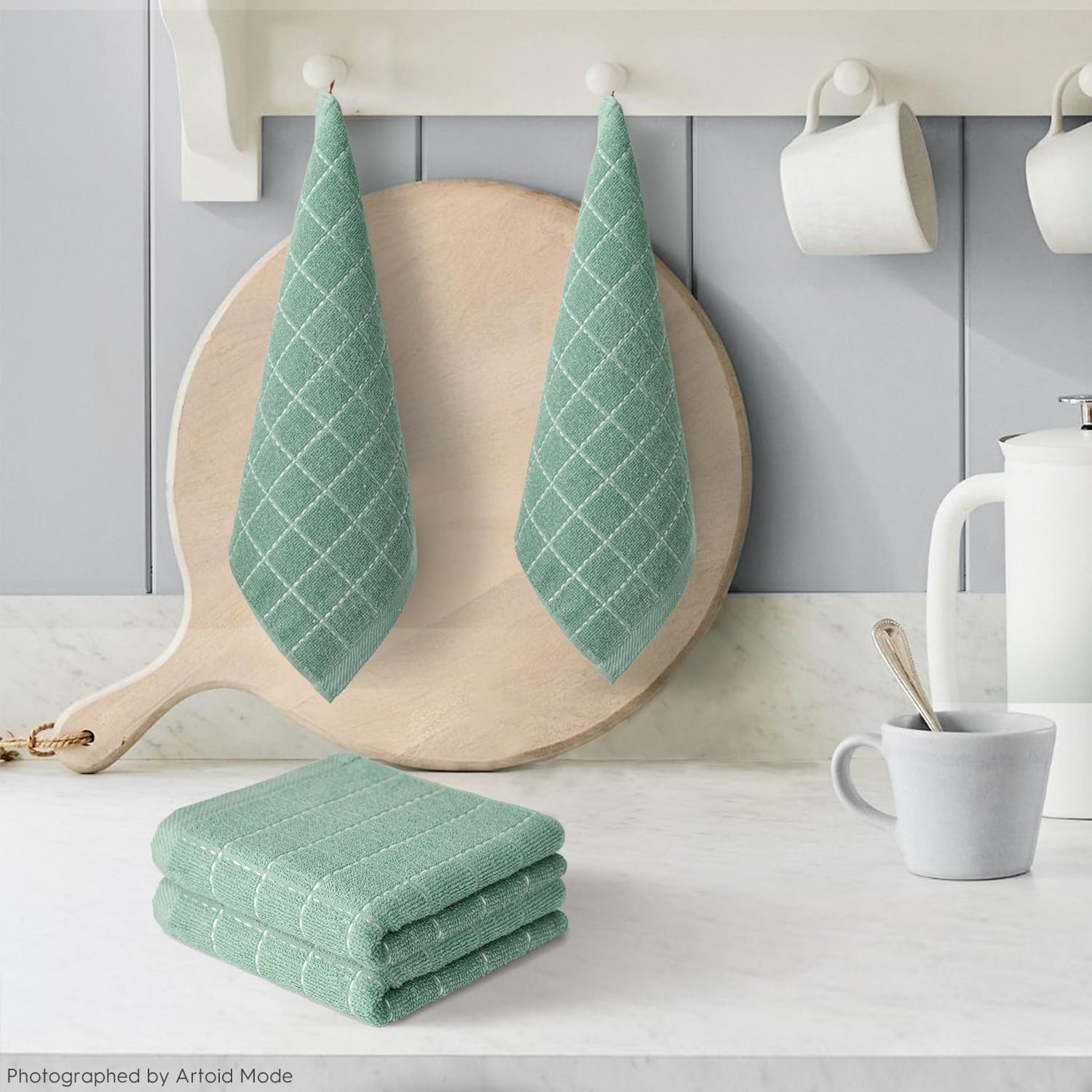 Artoid Mode Checkered Designed Cotton Light Green Terry Kitchen Dish Cloths, 12x12 Inch Soft Absorbent Quick Drying Cleaning Kitchen Rags Set of 6