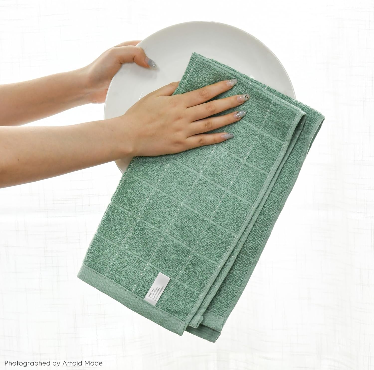 Artoid Mode Checkered Designed Cotton Light Green Terry Kitchen Dish Towels, 15x25 Inch Soft Absorbent Quick Drying Cleaning Tea Towels Set of 4