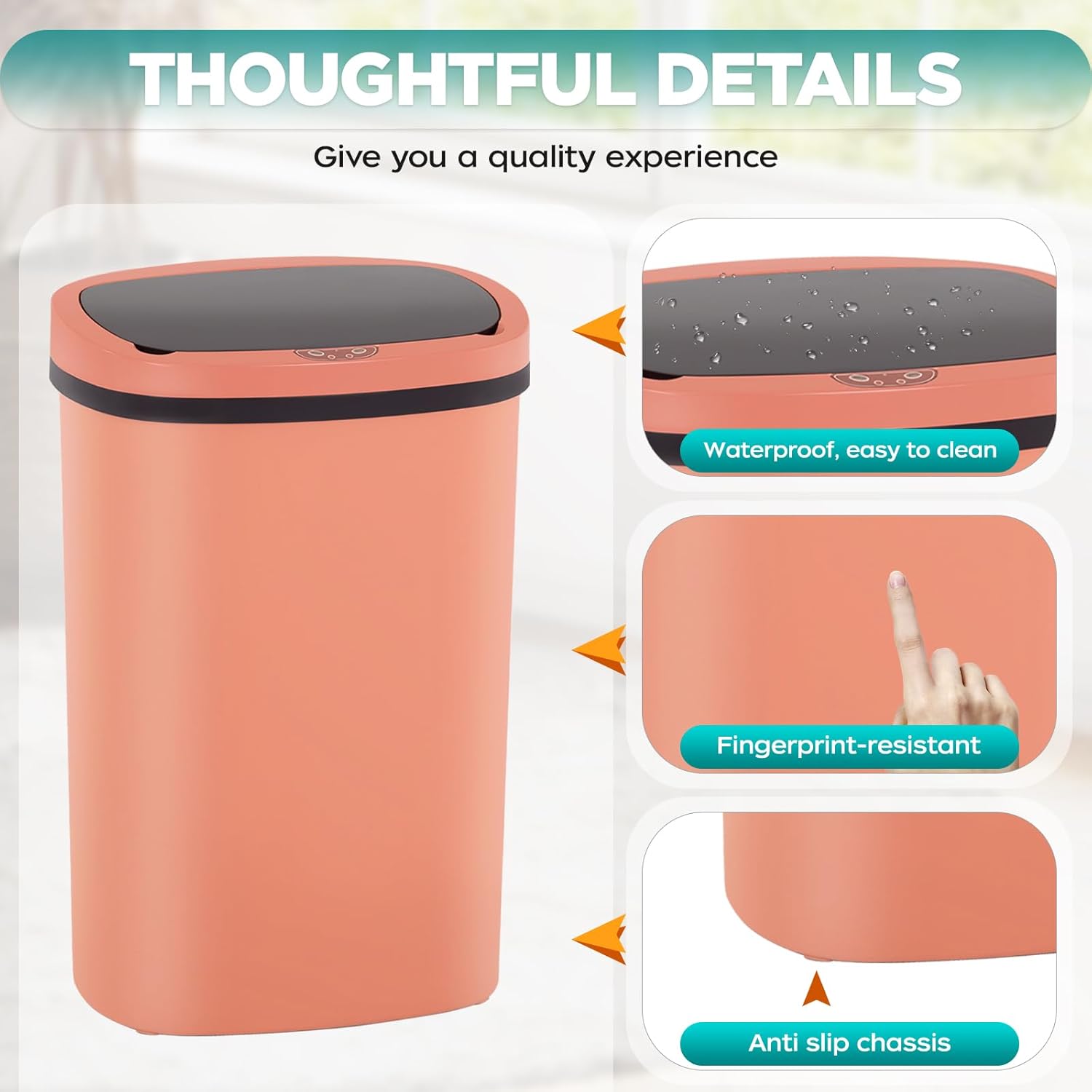 Automatic Motion Sensor Bathroom Trash Can with Lid, 13 Gallon Touchless Trash Bin, Smart Dog Proof Garbage Can, Touch Free Waste Basket for Toilet, Office, Bedroom,Pink