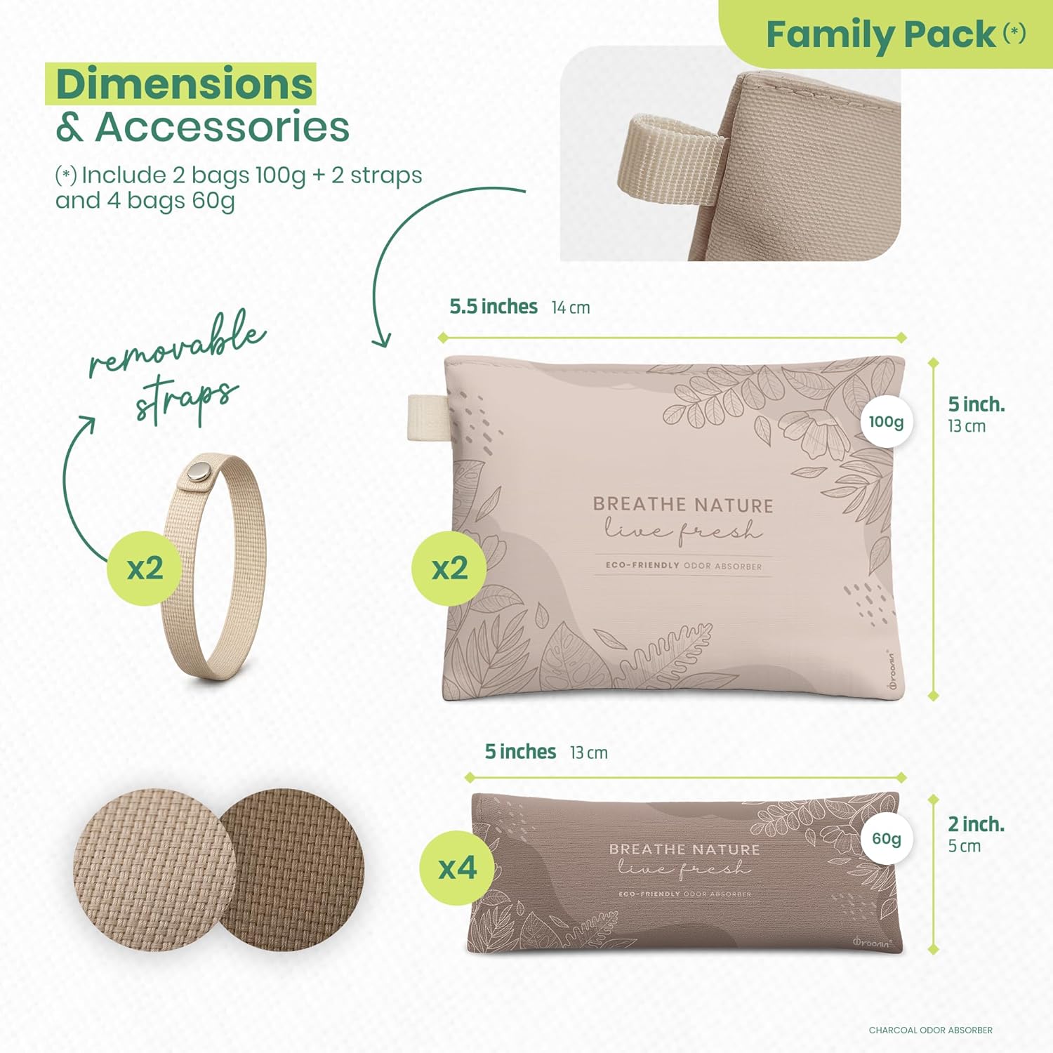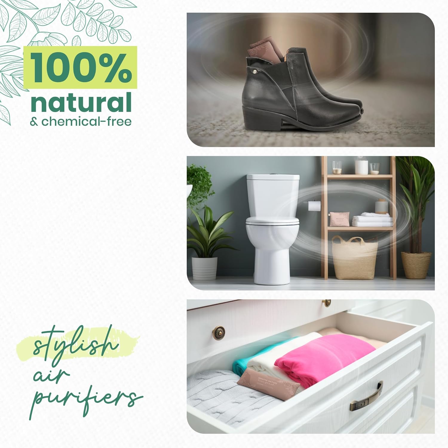 - STYLISH AIR PURIFIERS – Designed to blend seamlessly into any space, our charcoal deodorizer bags offer powerful freshness with a clean, modern look. Use them as a car charcoal odor eliminator or place them in your home to eliminate odors effectively