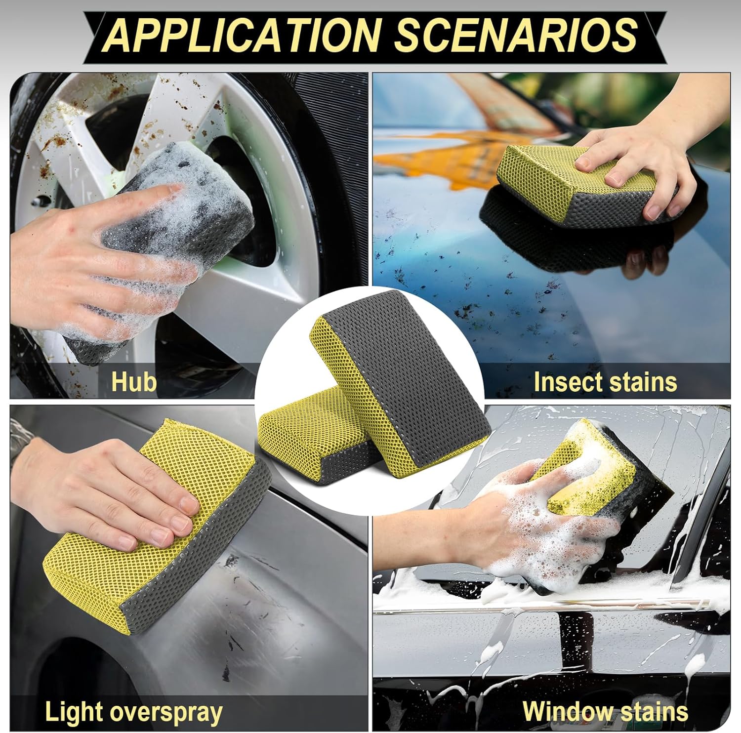 - New Upgraded Car Cleaning Sponge: JIURAIN 2-in-1 car wash sponges are great for easily removing stubborn stains, roadside splatters, road tar & spray paint from car paint and glass—no traditional clay needed. Wipe gently restores shine, delivering professional-level care