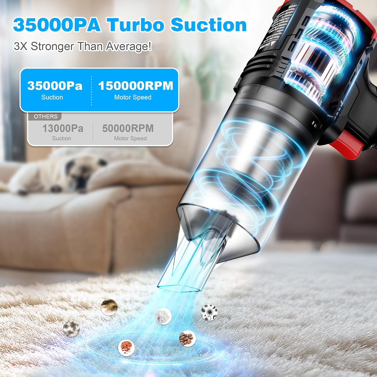 Handheld Vacuum Cleaner Cordless - 35000PA Strong Suction for Car & Home, Car Vacuum Portable Rechargeable Lightweight for Pet Hair with HEPA Filter, Quick Clean in Office/Desk/Couch (Red)